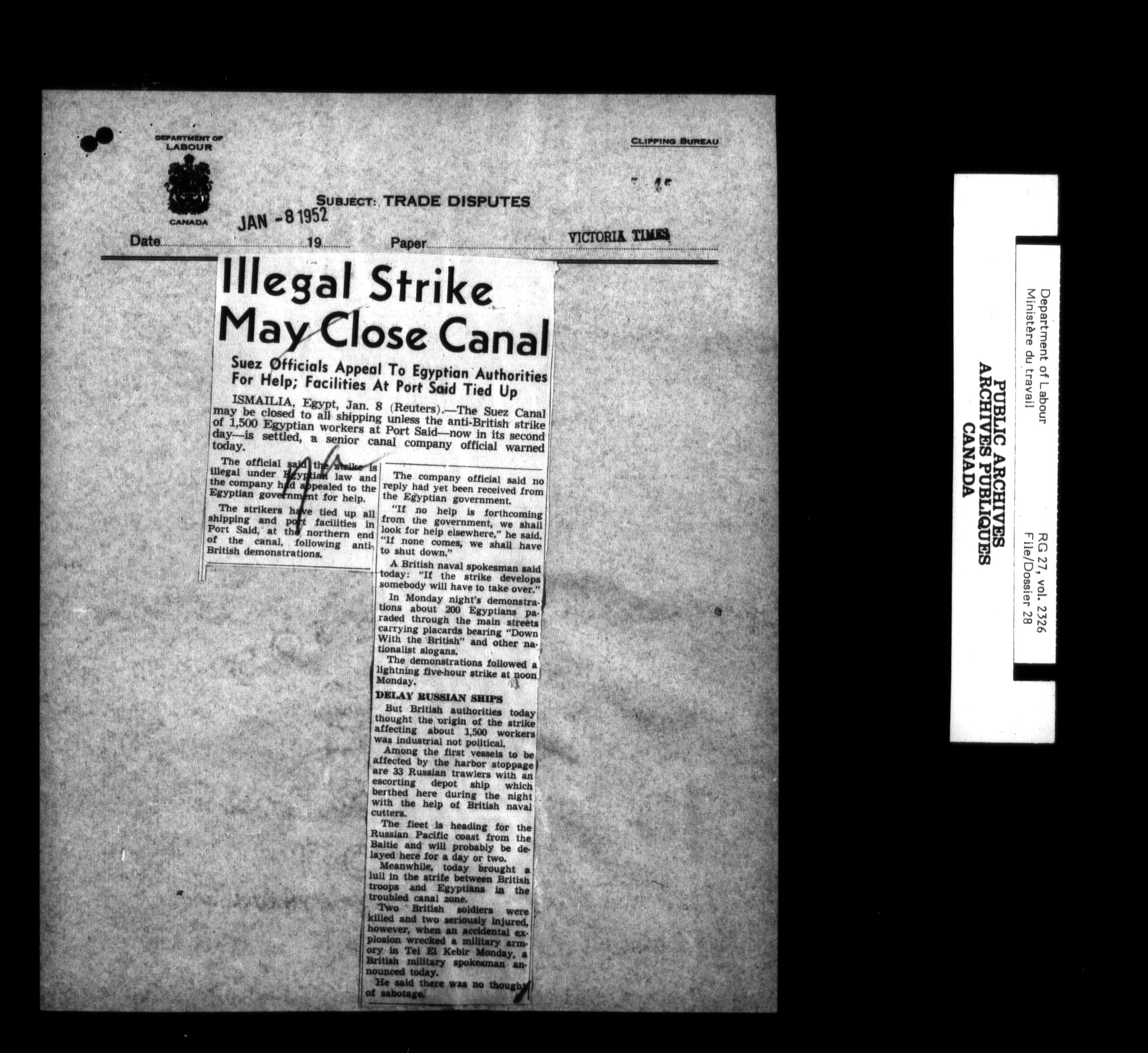 Department of Labour, Economics and Research Branch : Strikes and lockout files : T-6210