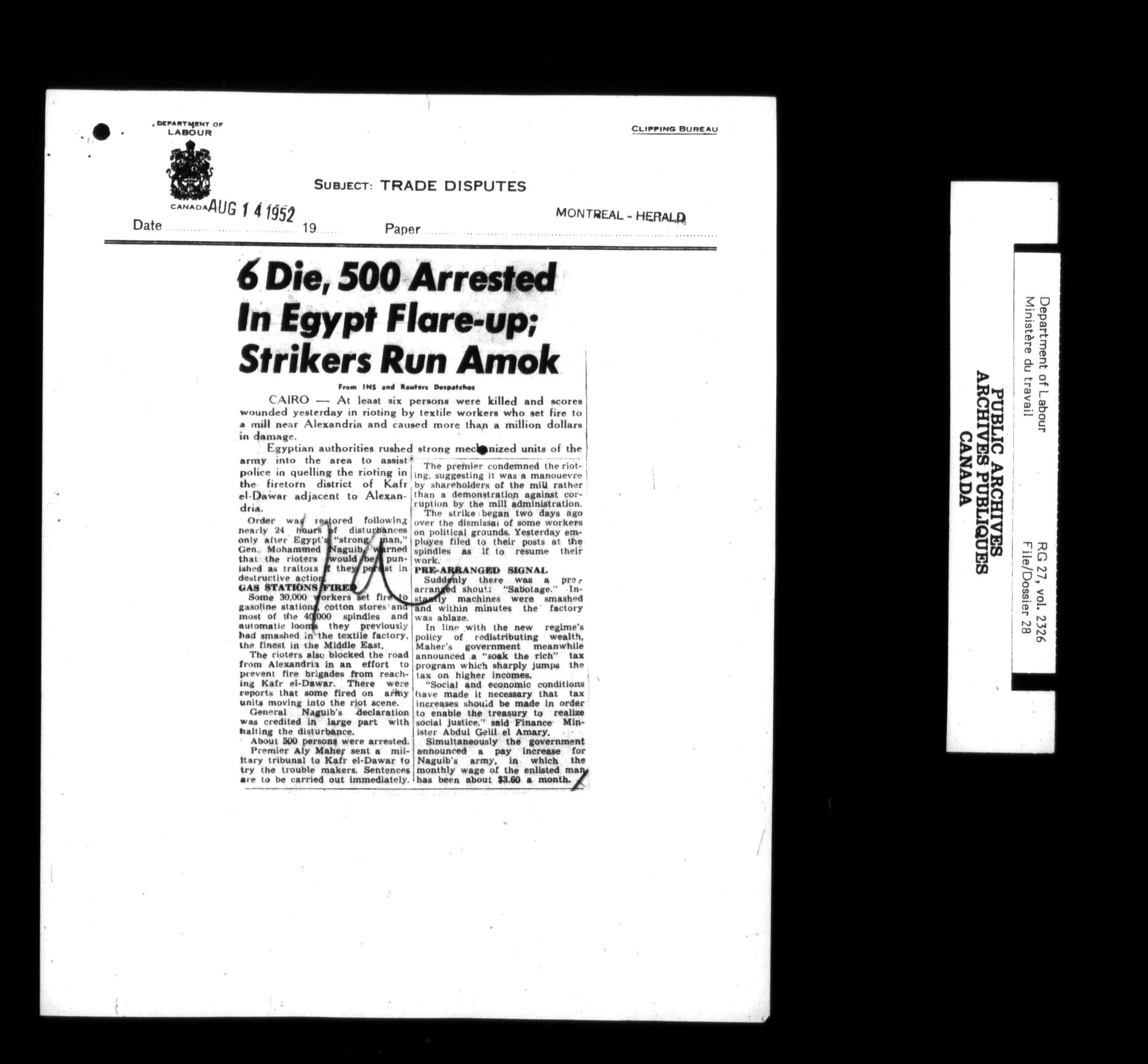 Department of Labour, Economics and Research Branch : Strikes and lockout files - 6210