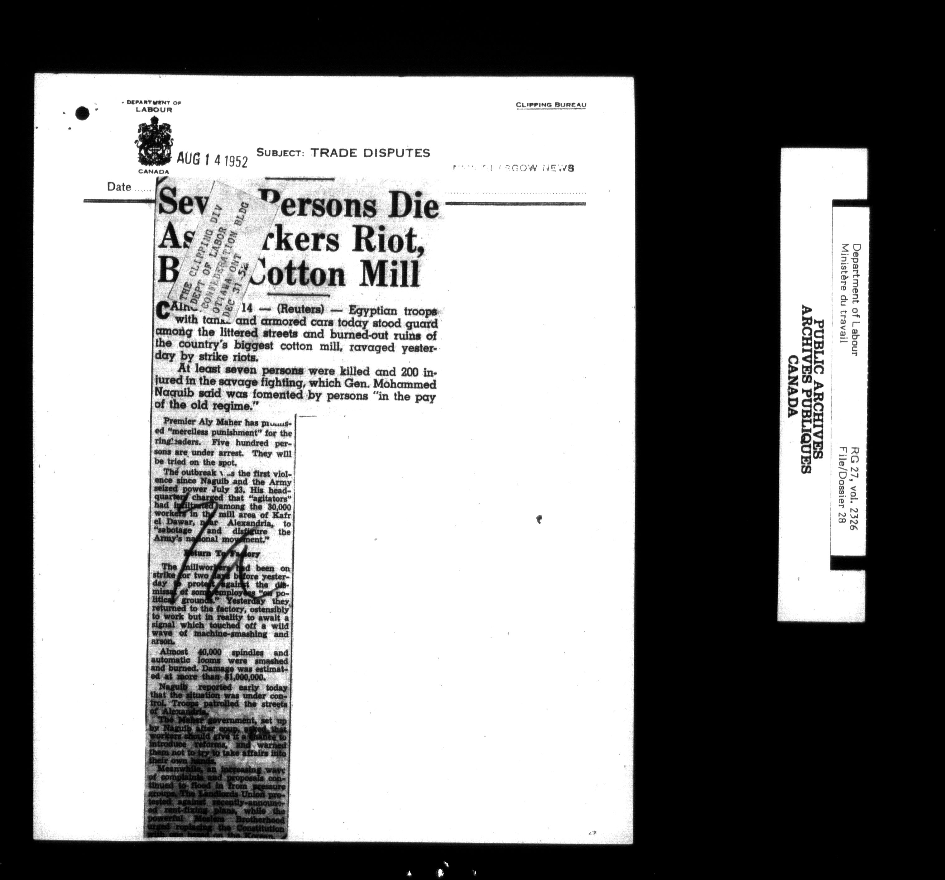 Department of Labour, Economics and Research Branch : Strikes and lockout files - 6210