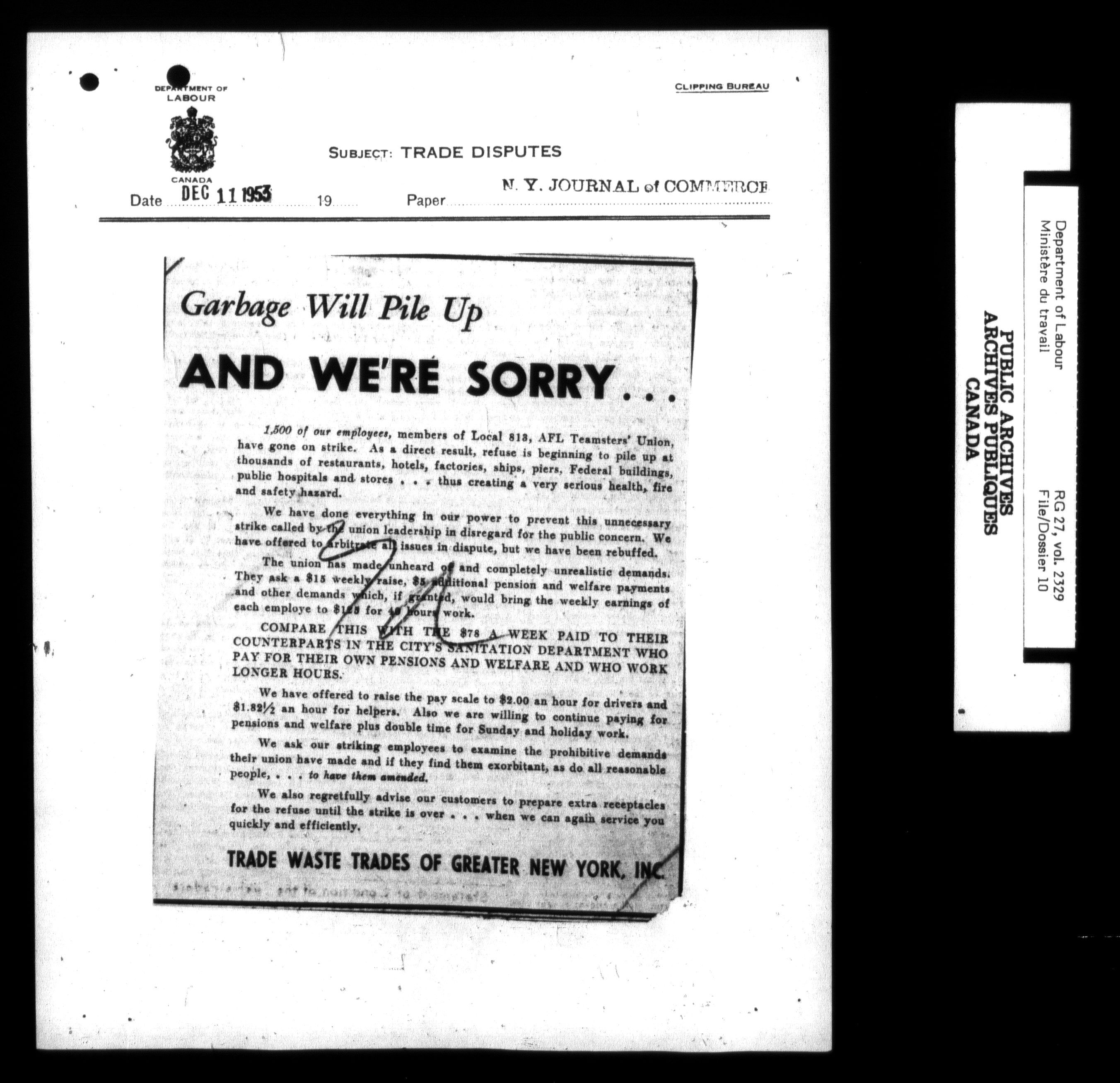 Department of Labour, Economics and Research Branch : Strikes and lockout files - 6211