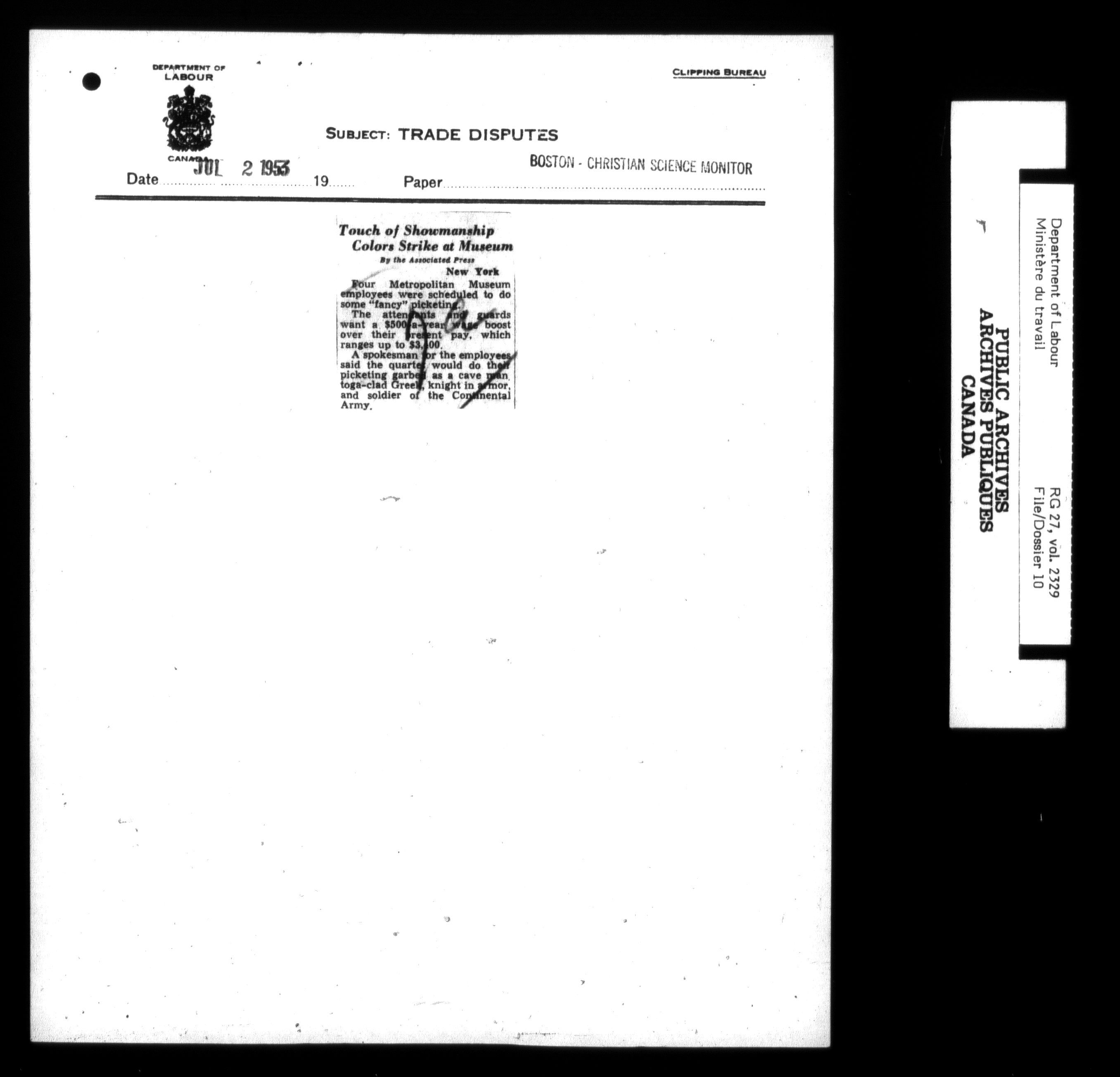 Department of Labour, Economics and Research Branch : Strikes and lockout files - 6211