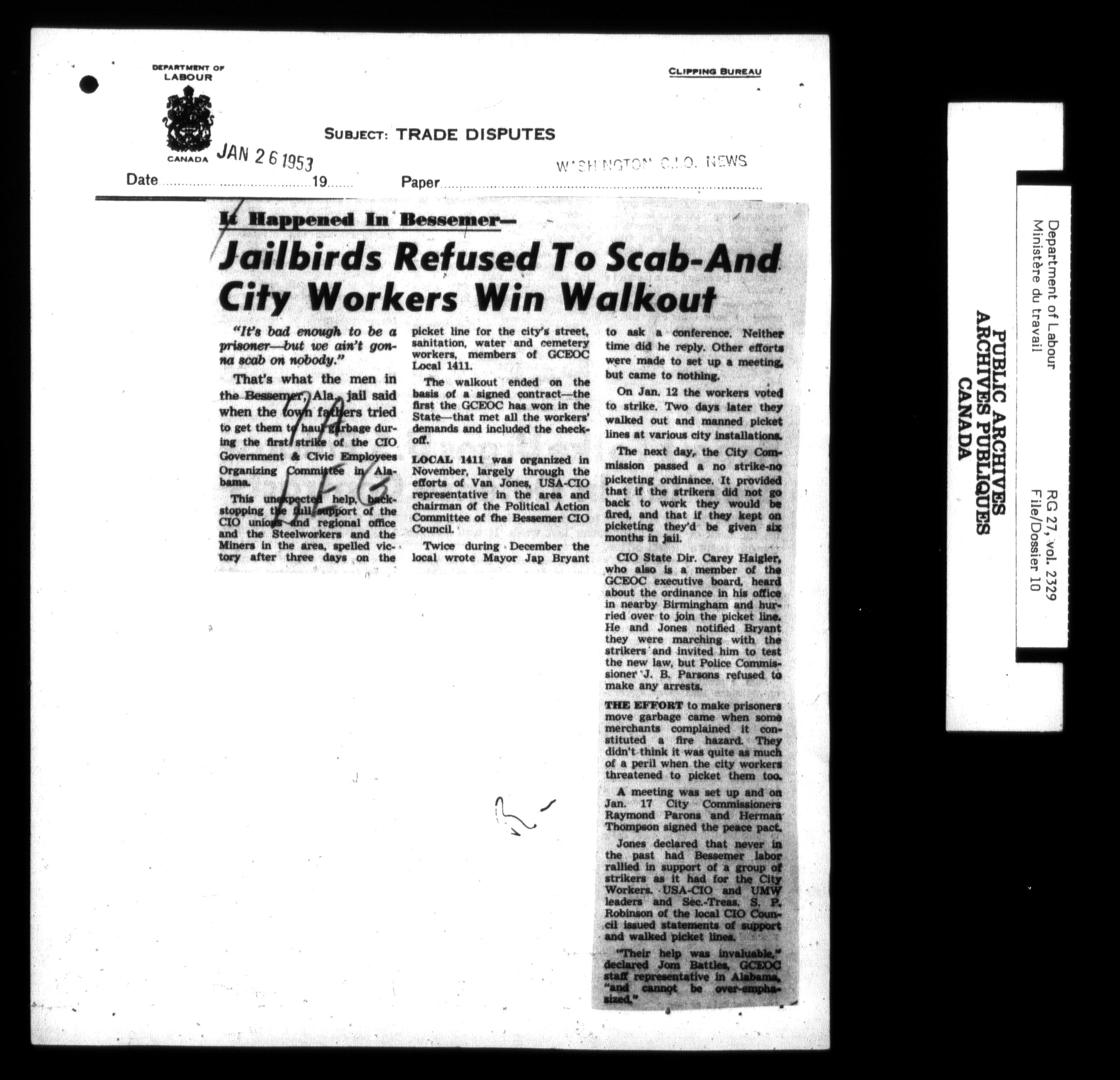Department of Labour, Economics and Research Branch : Strikes and lockout files - 6211