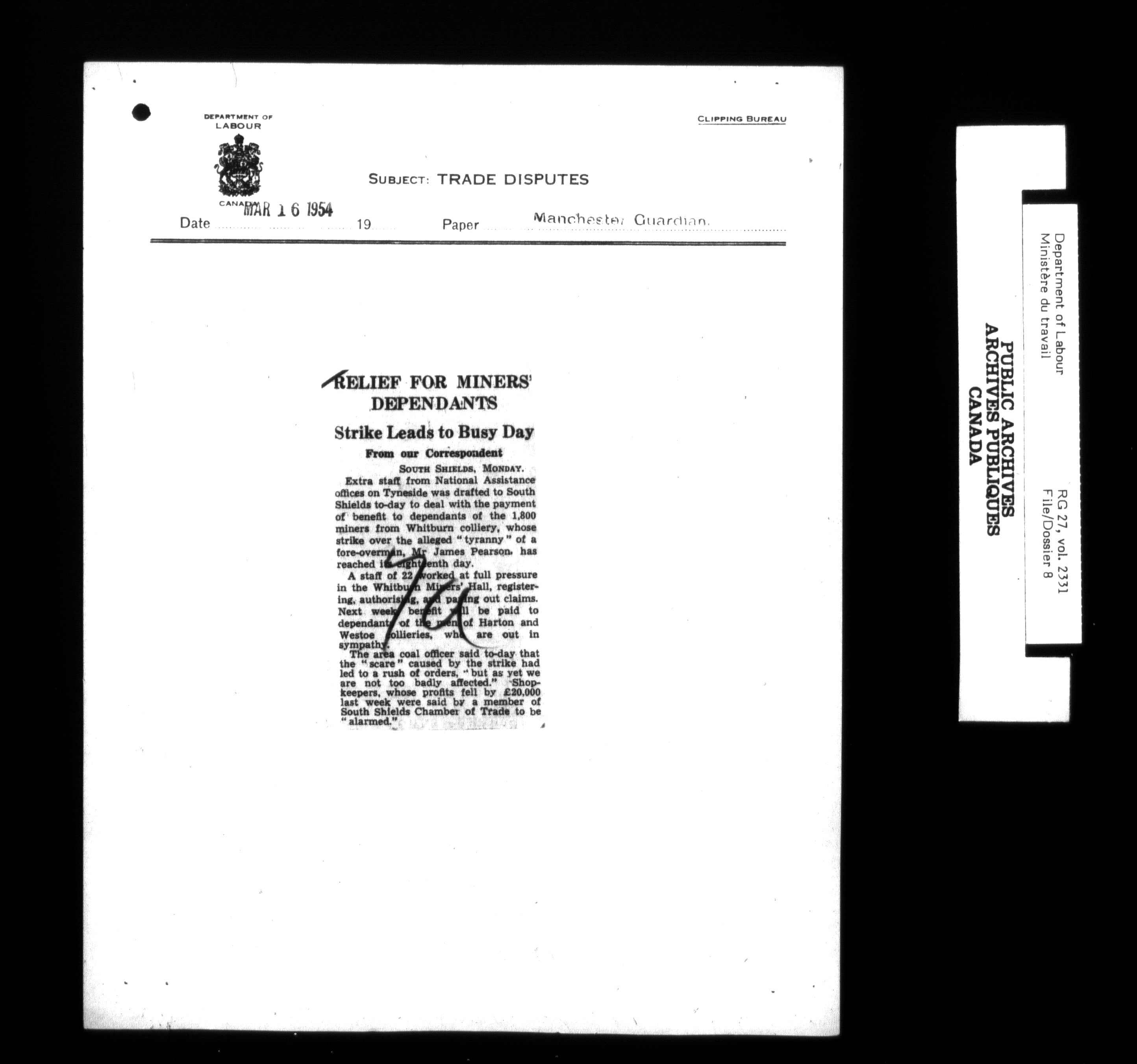 Department of Labour, Economics and Research Branch : Strikes and lockout files - 6212