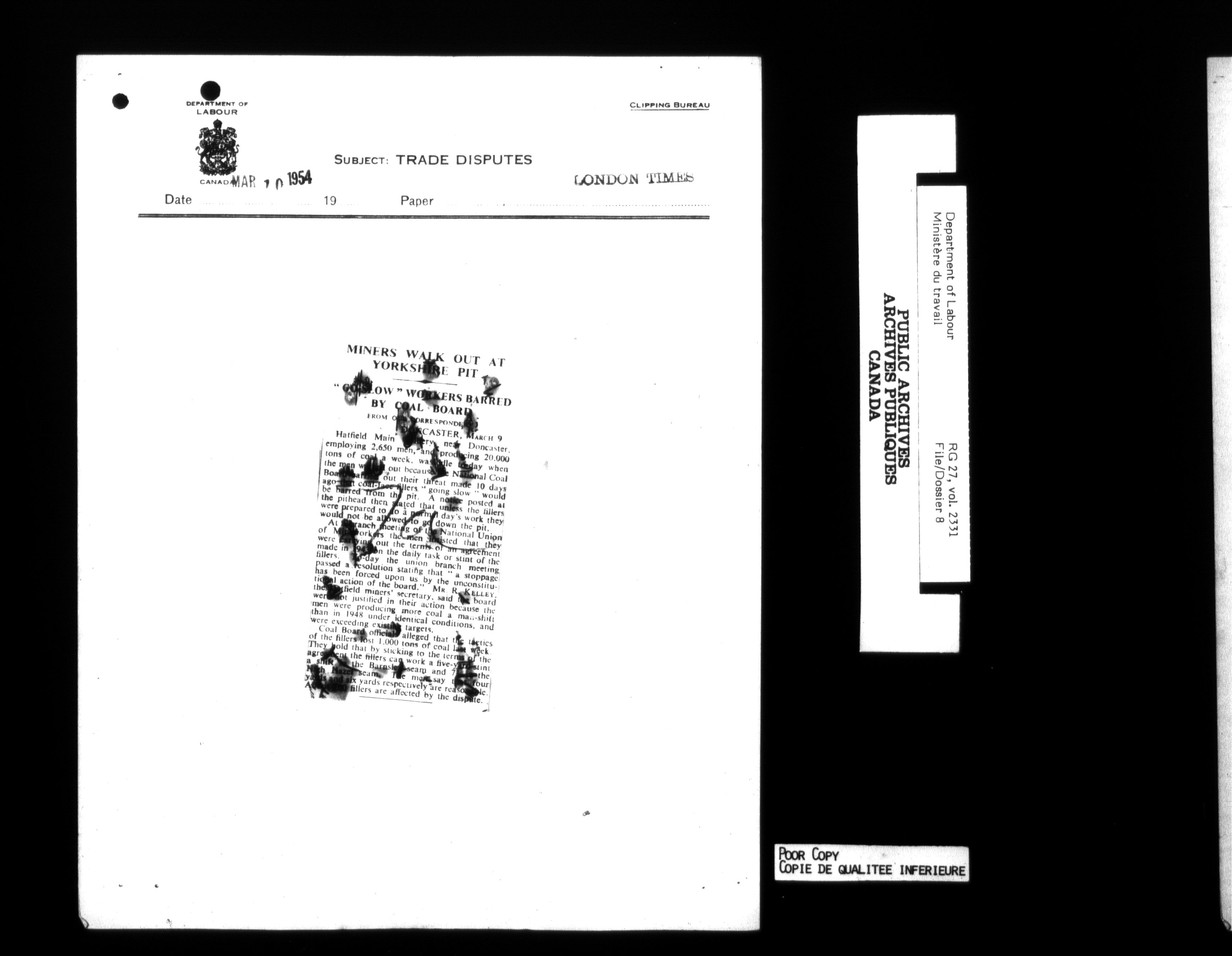Department of Labour, Economics and Research Branch : Strikes and lockout files - 6212