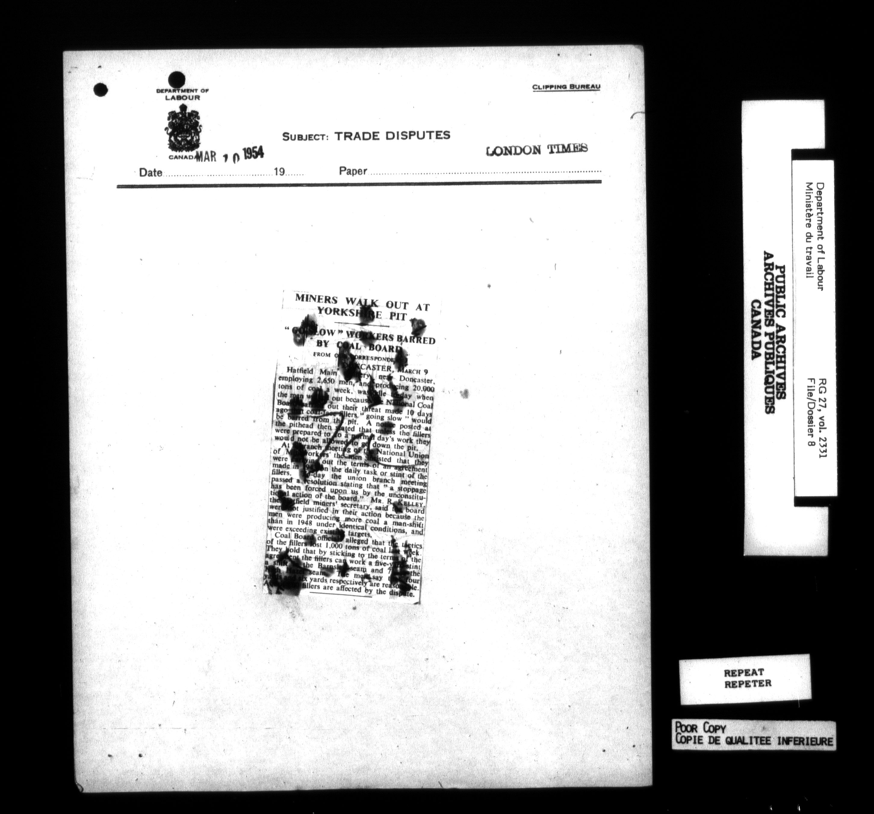 Department of Labour, Economics and Research Branch : Strikes and lockout files - 6212