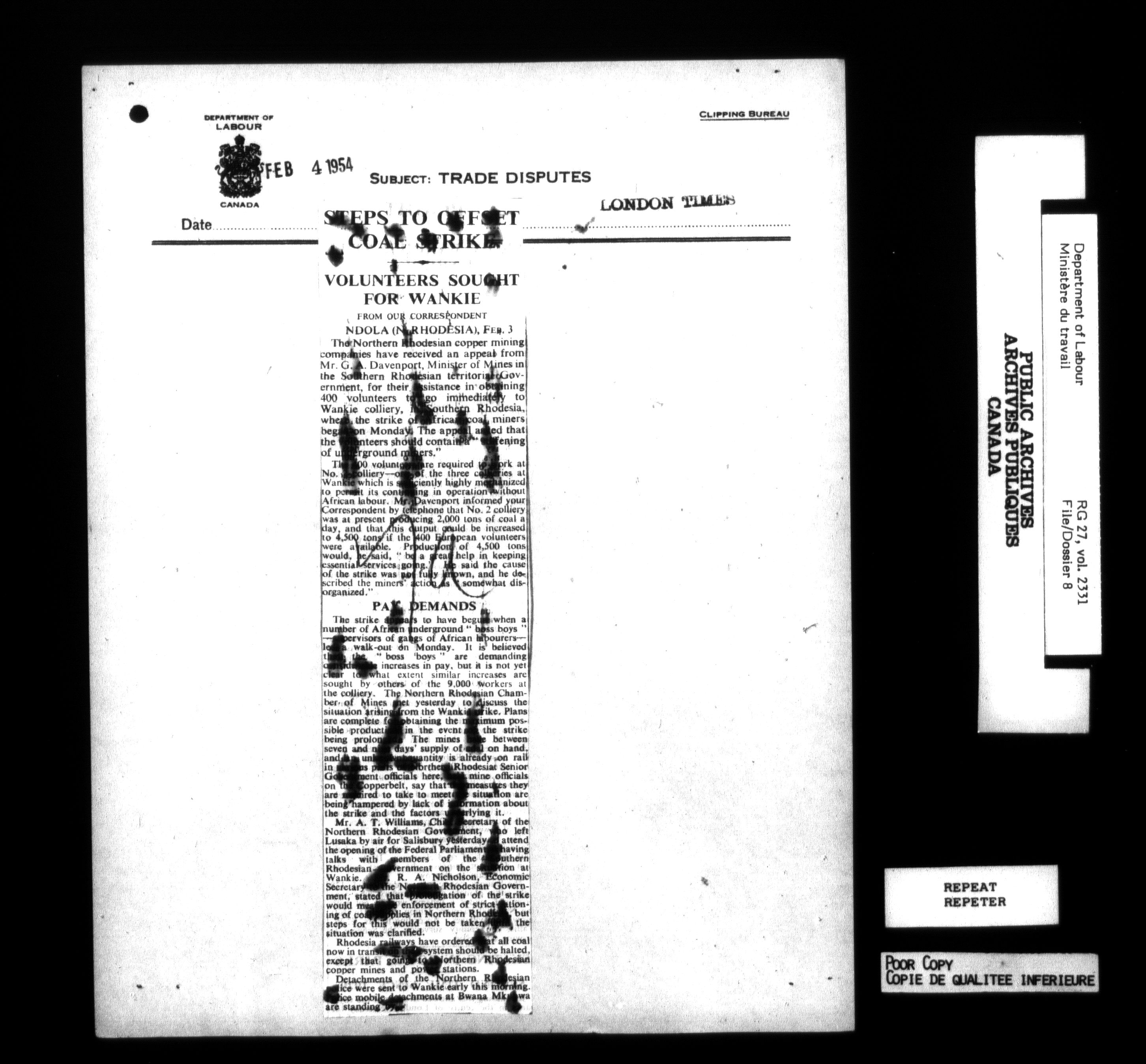 Department of Labour, Economics and Research Branch : Strikes and lockout files - 6212