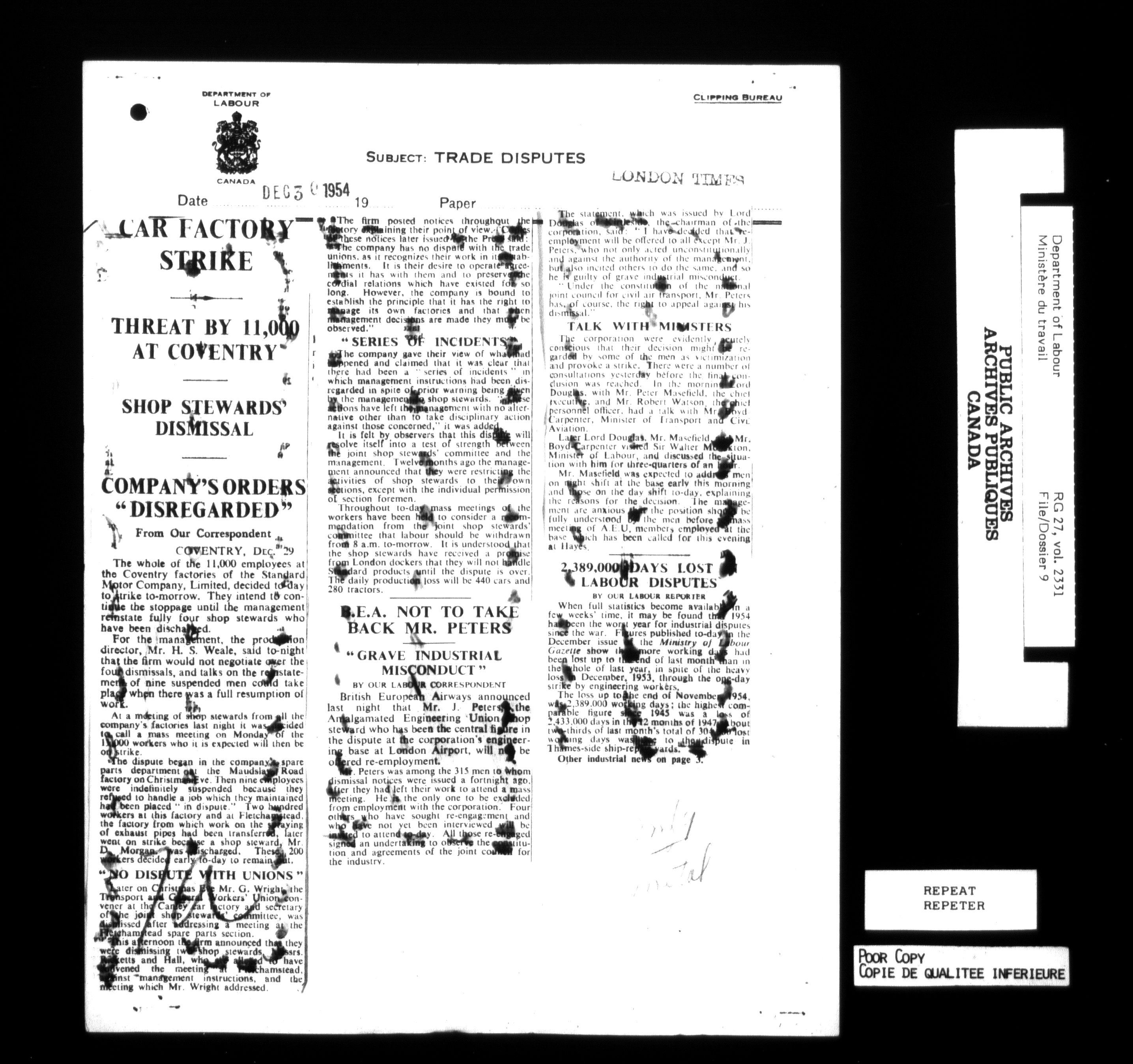 Department of Labour, Economics and Research Branch : Strikes and lockout files - 6212