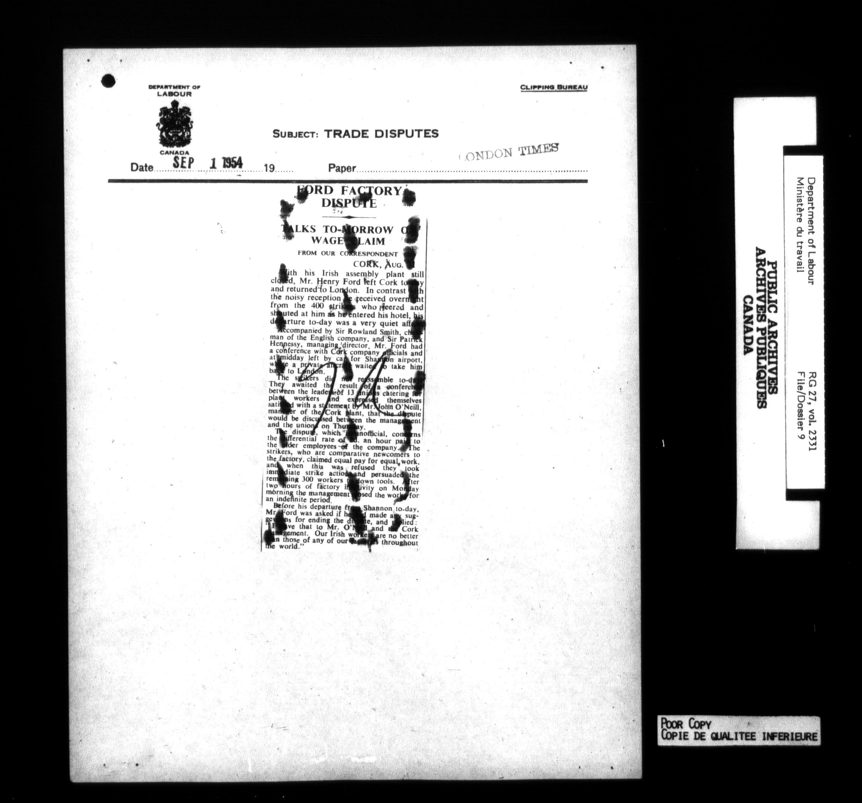 Department of Labour, Economics and Research Branch : Strikes and lockout files - 6212
