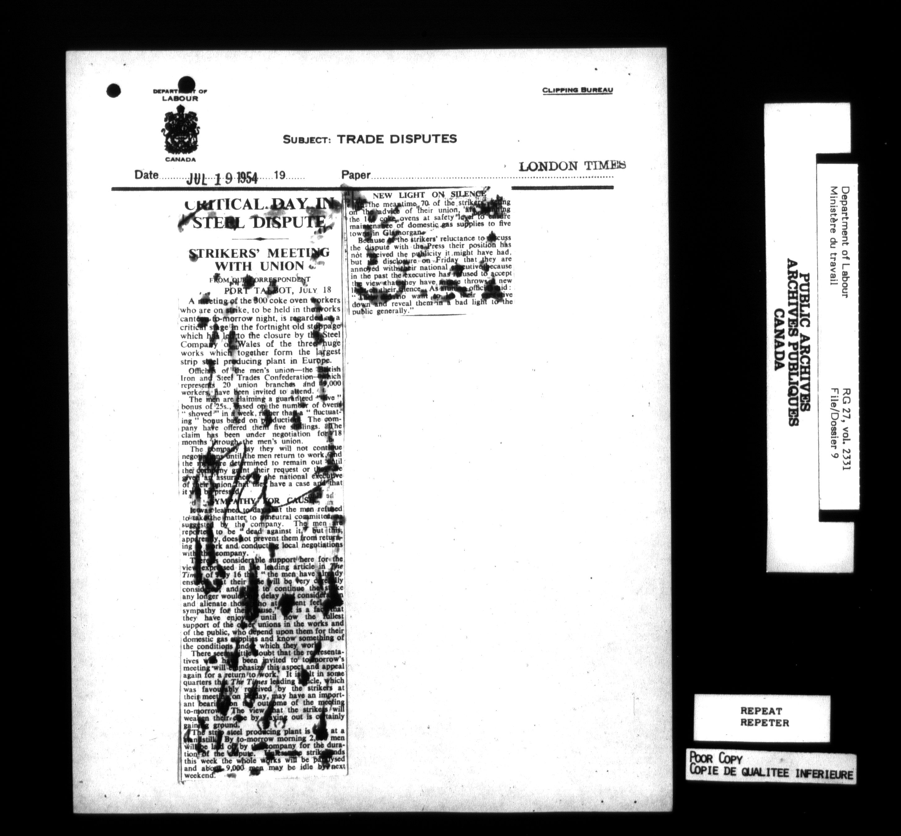 Department of Labour, Economics and Research Branch : Strikes and lockout files - 6212