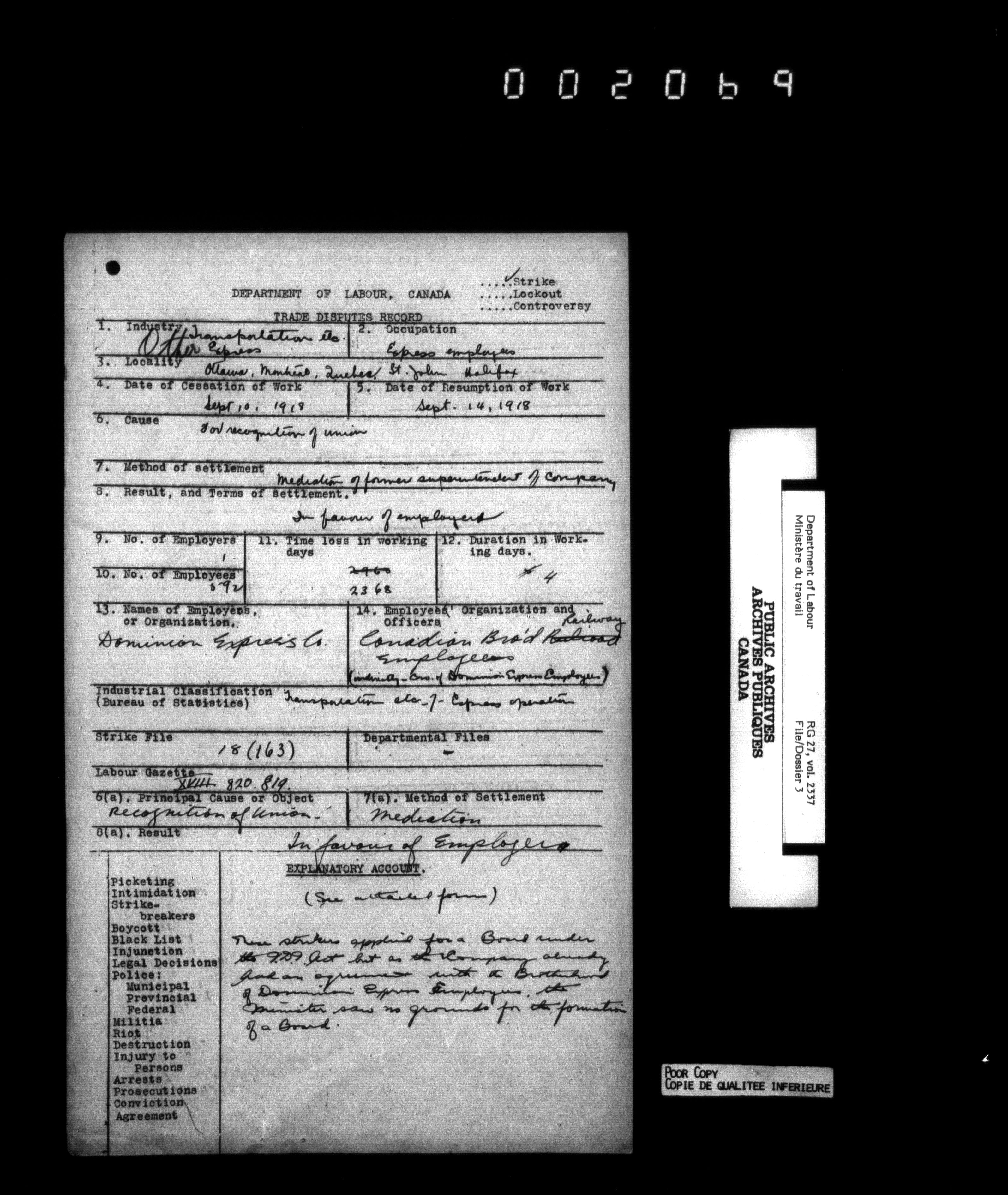 Department of Labour, Economics and Research Branch : Strikes and lockout files - 6216