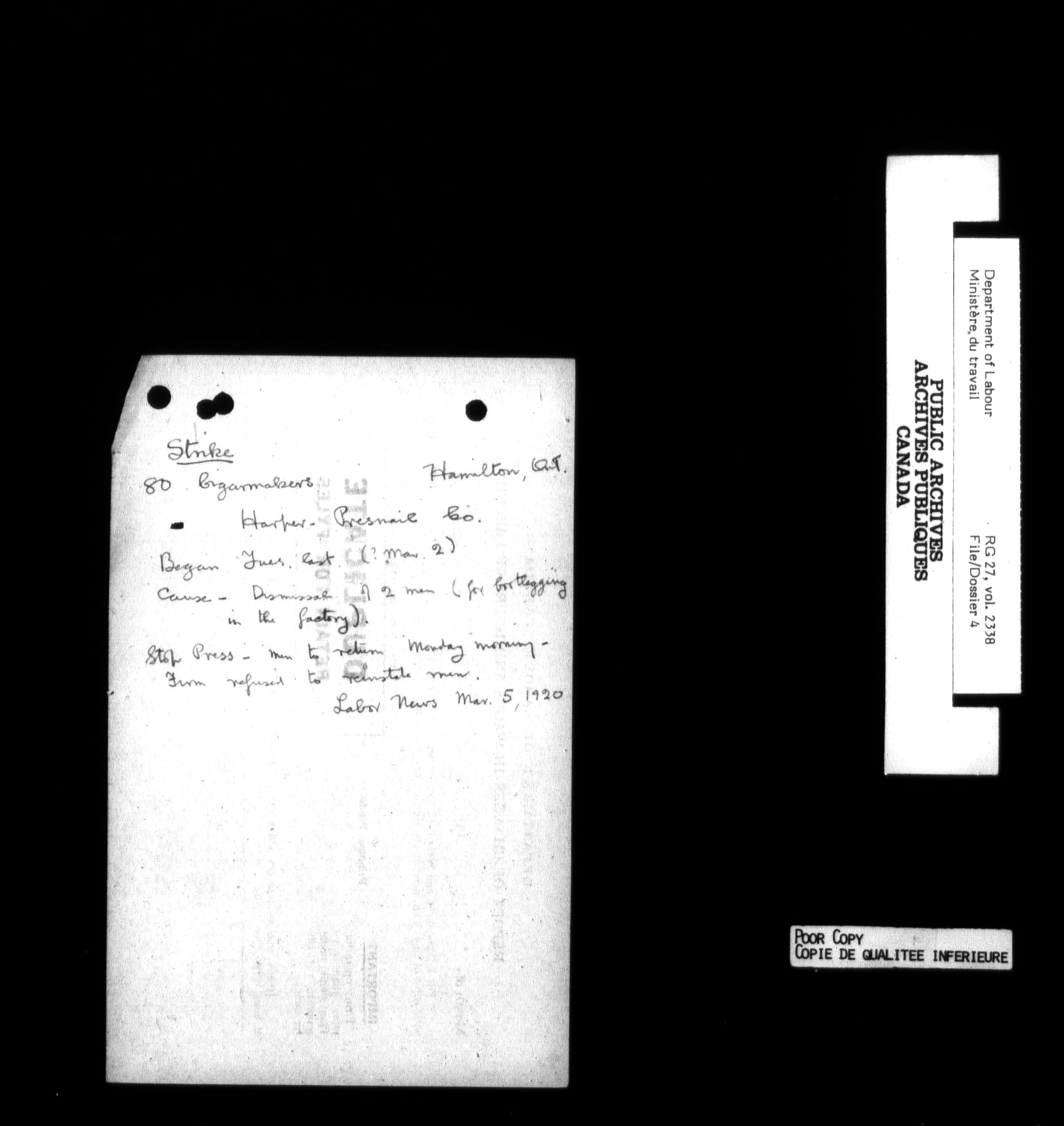 Department of Labour, Economics and Research Branch : Strikes and lockout files - 6217