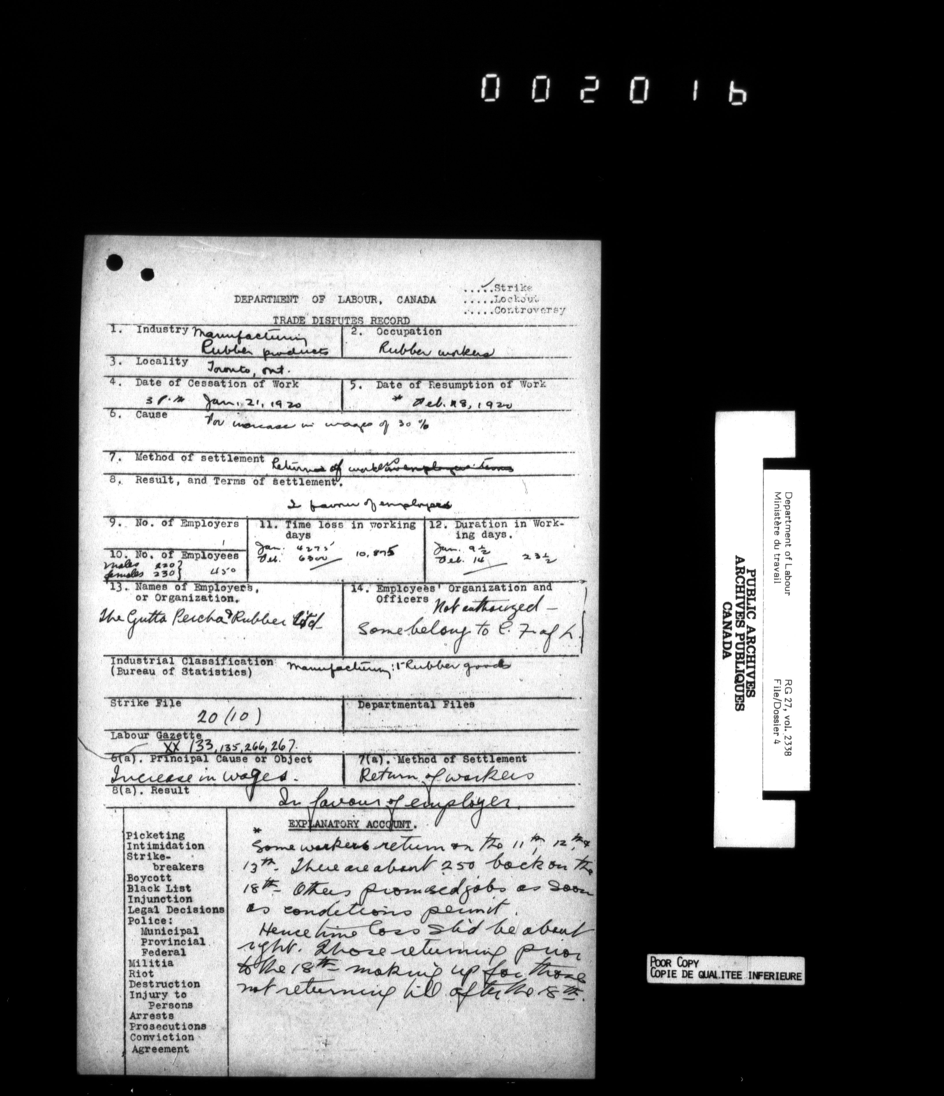 Department of Labour, Economics and Research Branch : Strikes and lockout files - 6217