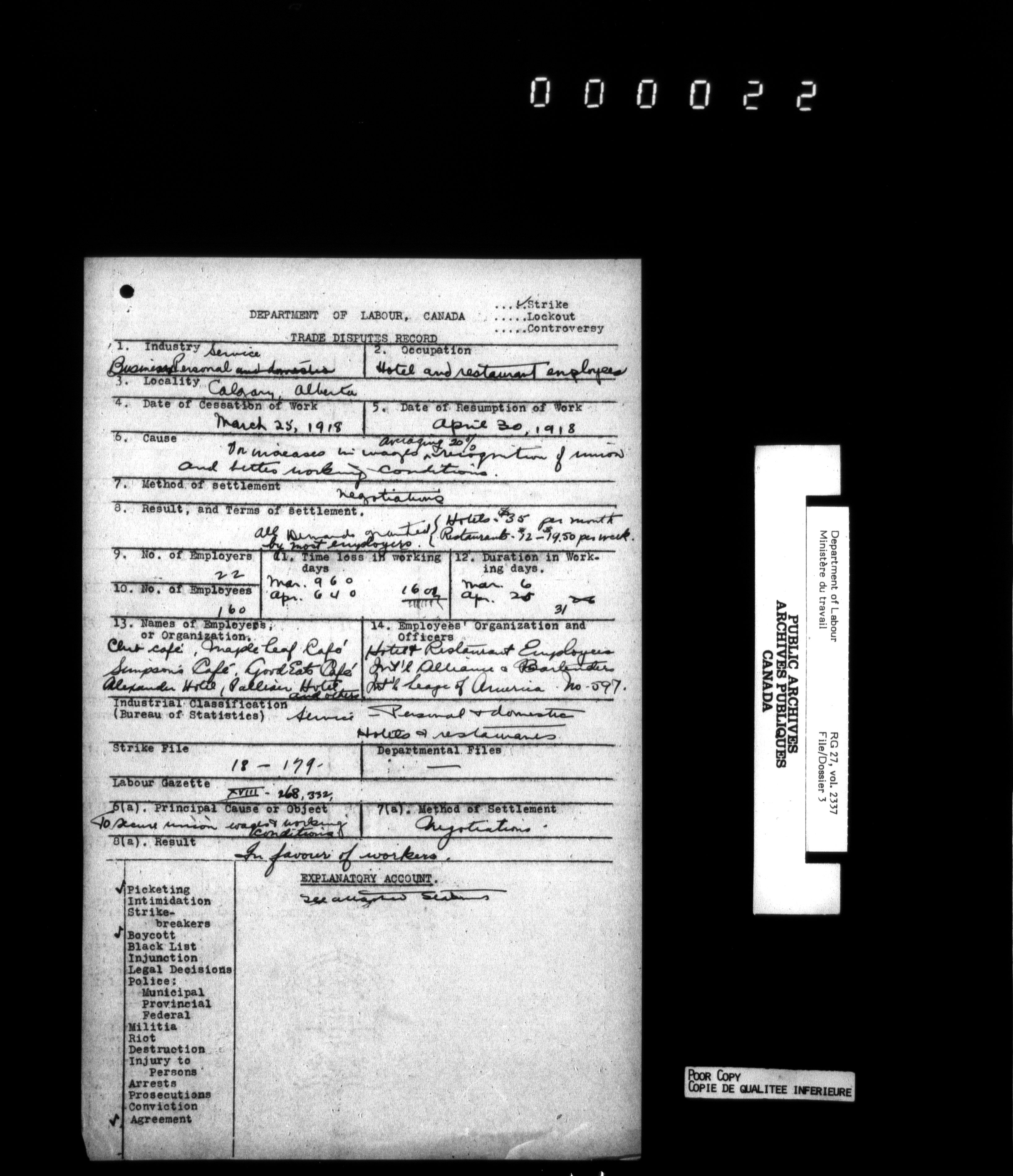 Department of Labour, Economics and Research Branch : Strikes and lockout files - 6217