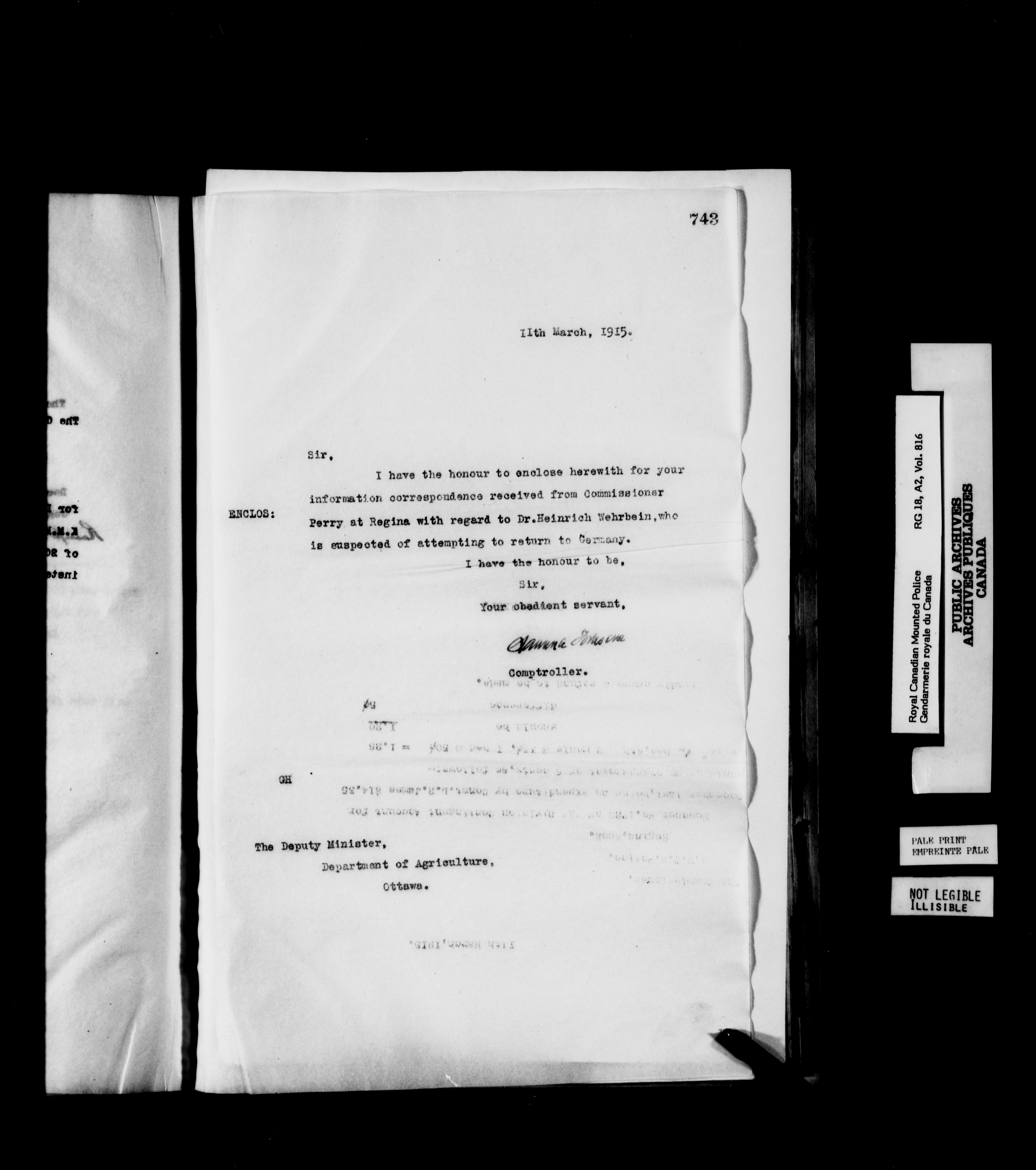 Royal Canadian Mounted Police, Office of the Comptroller : Letterbooks, 1883-1919 : T-6219