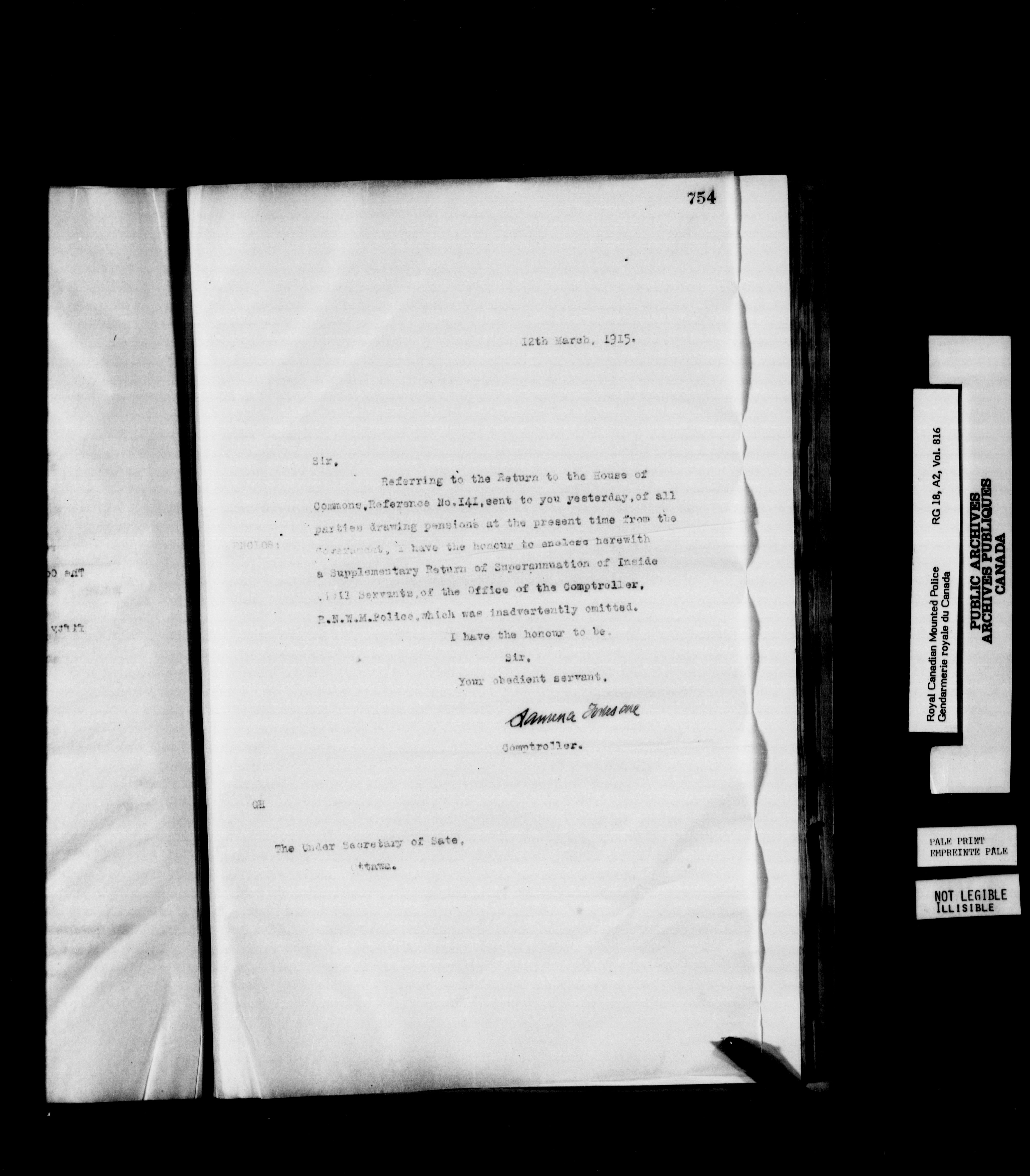 Royal Canadian Mounted Police, Office of the Comptroller : Letterbooks, 1883-1919 : T-6219