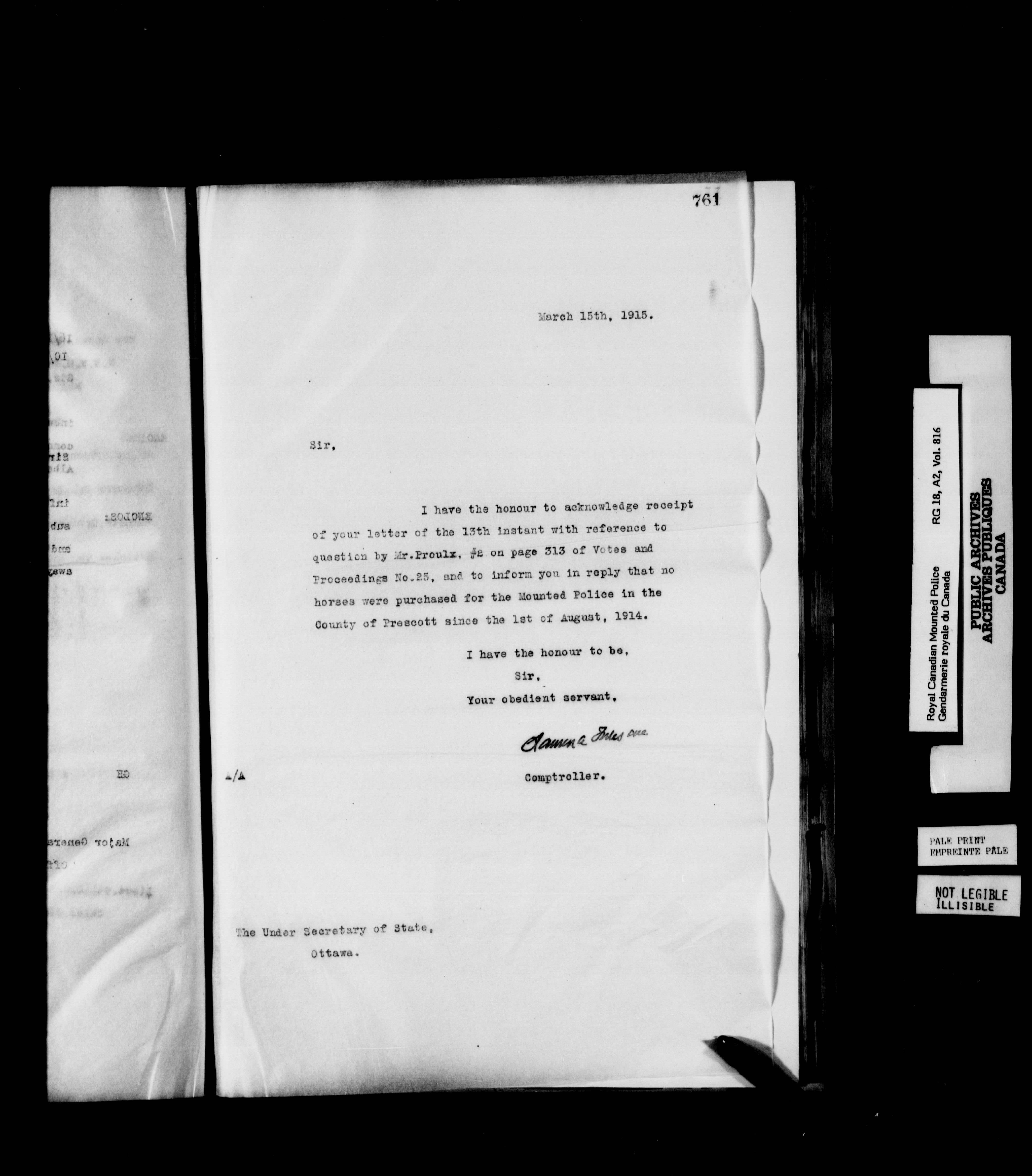 Royal Canadian Mounted Police, Office of the Comptroller : Letterbooks, 1883-1919 : T-6219