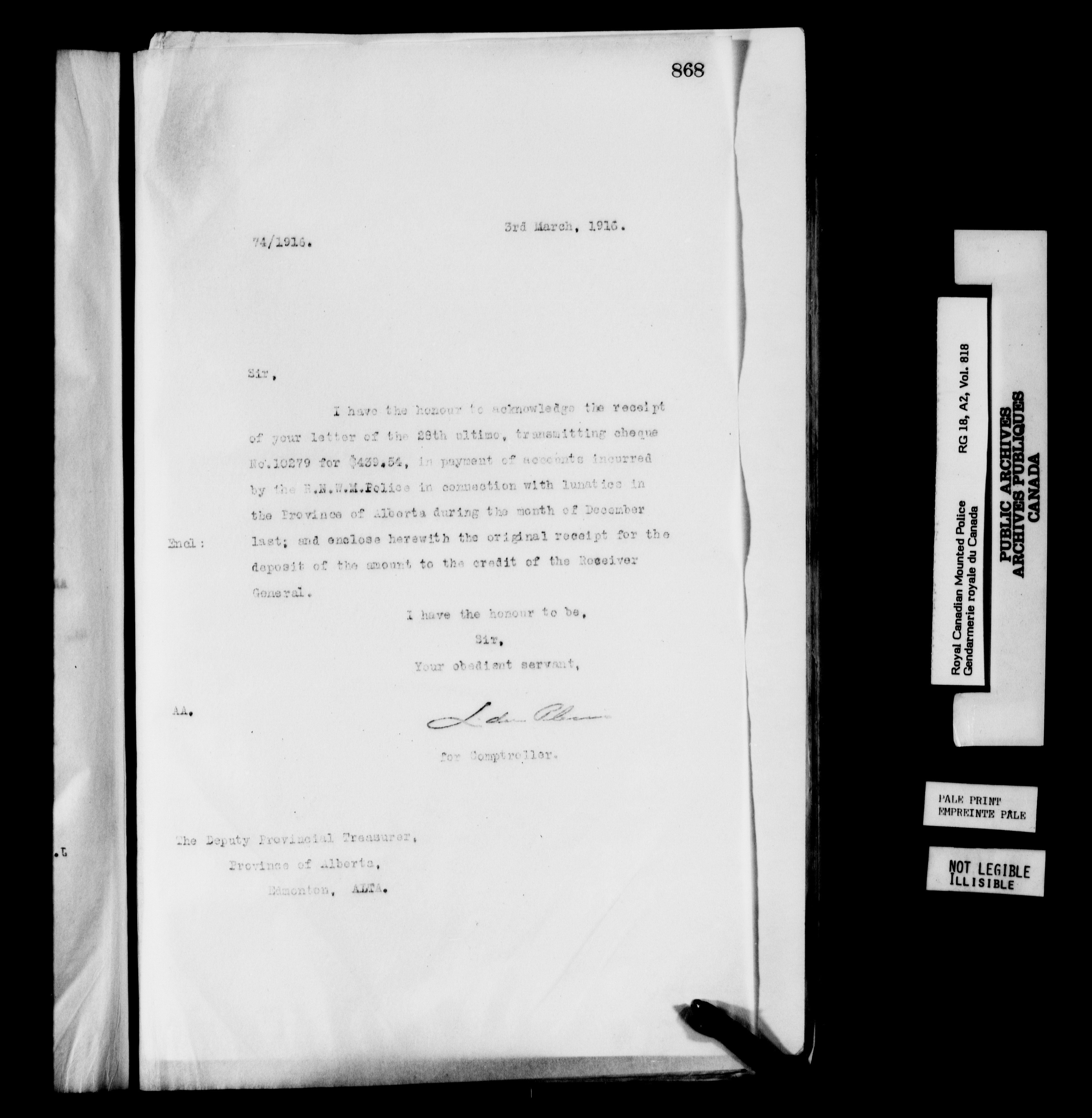 Royal Canadian Mounted Police, Office of the Comptroller : Letterbooks - 6221