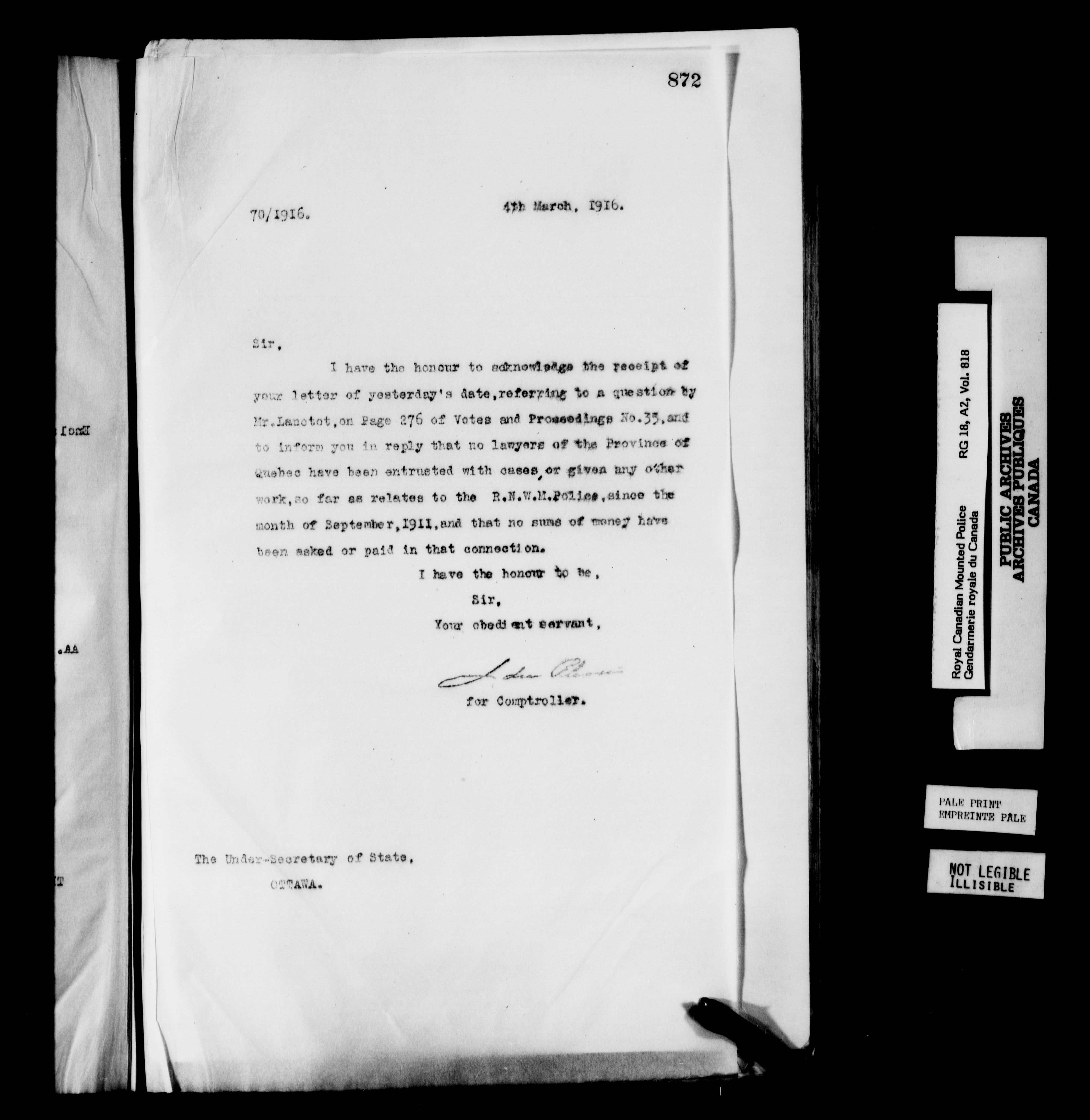 Royal Canadian Mounted Police, Office of the Comptroller : Letterbooks - 6221