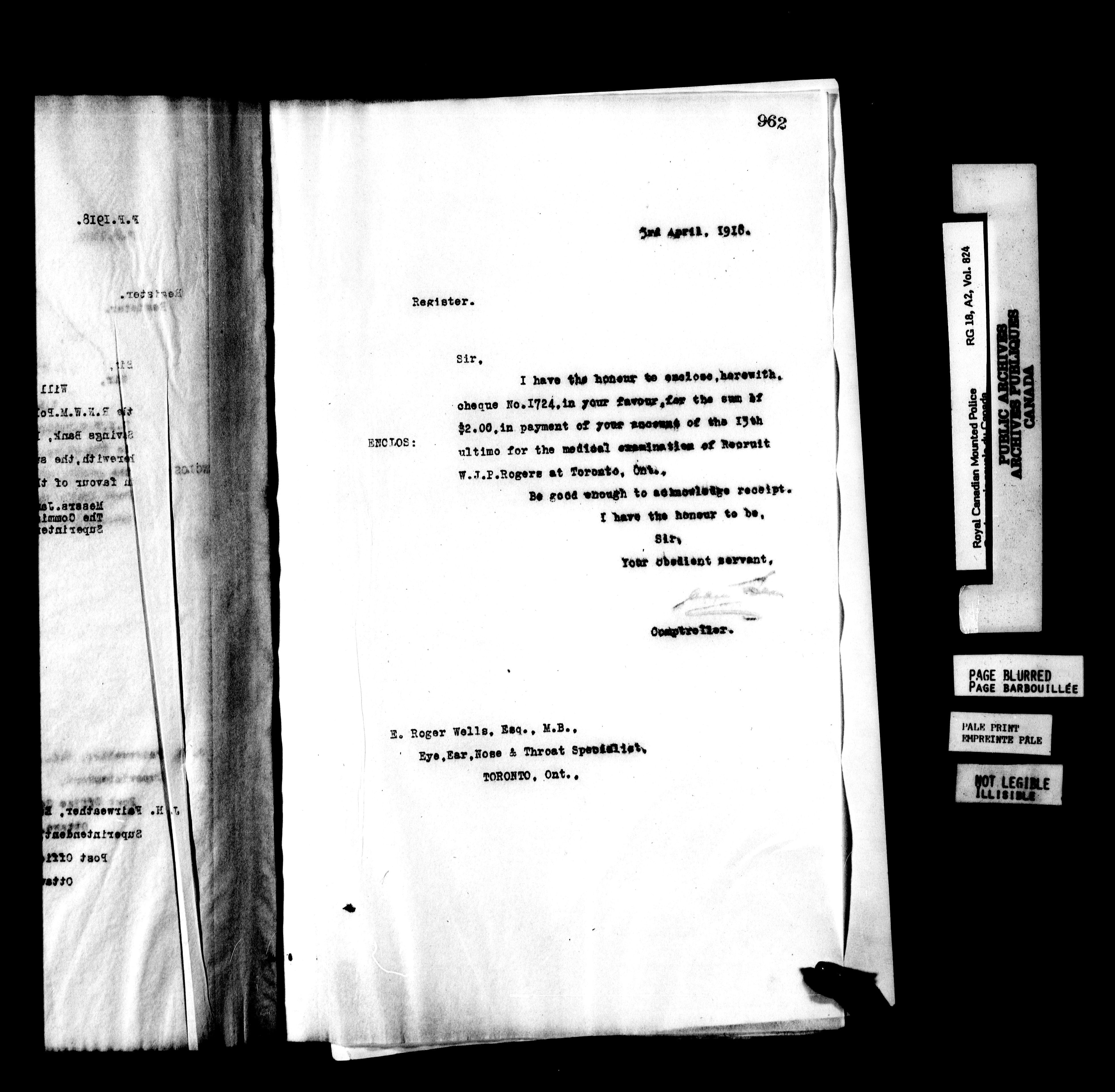 Royal Canadian Mounted Police, Office of the Comptroller : Letterbooks, 1883-1919 : T-6226