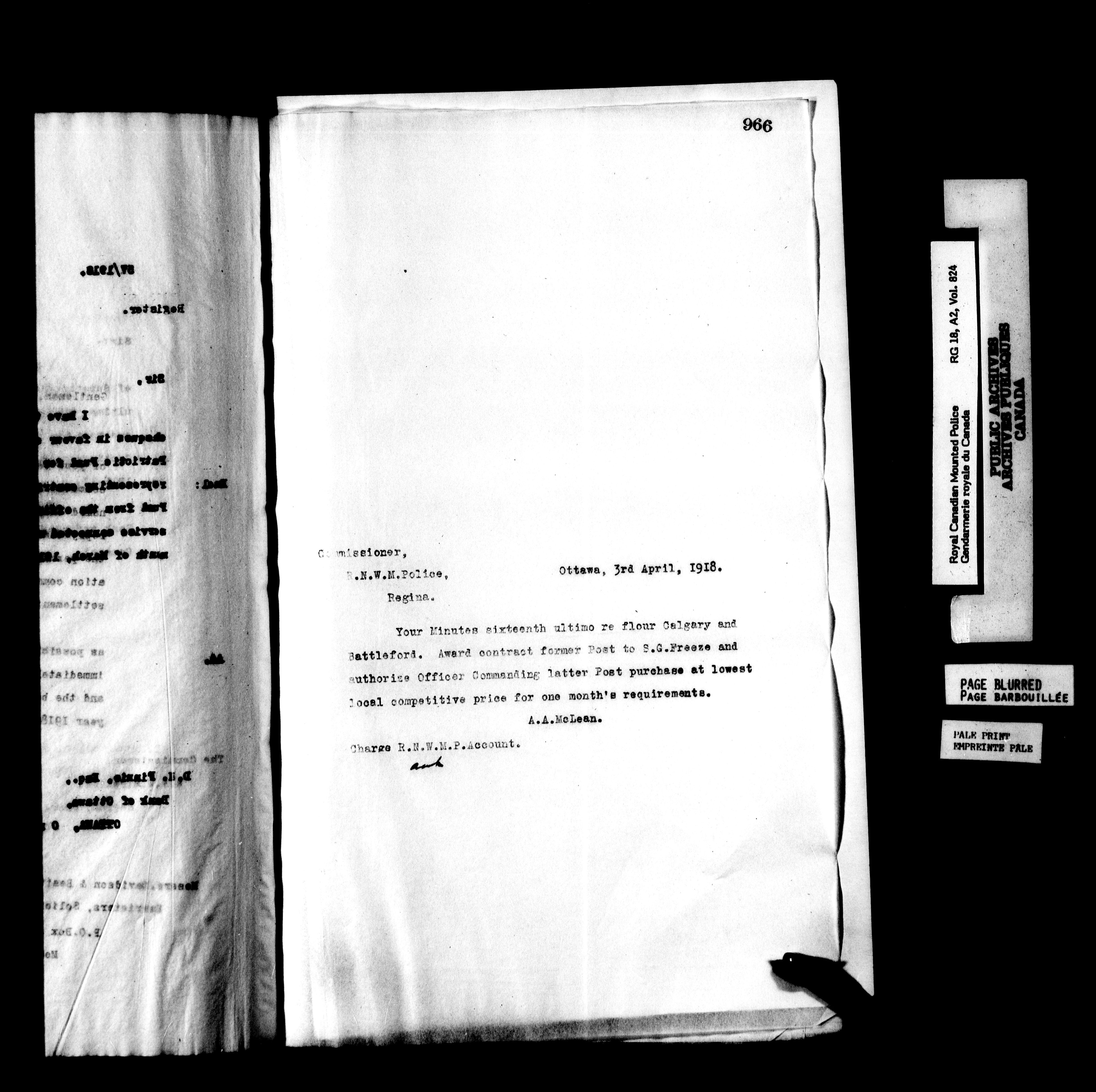 Royal Canadian Mounted Police, Office of the Comptroller : Letterbooks, 1883-1919 : T-6226