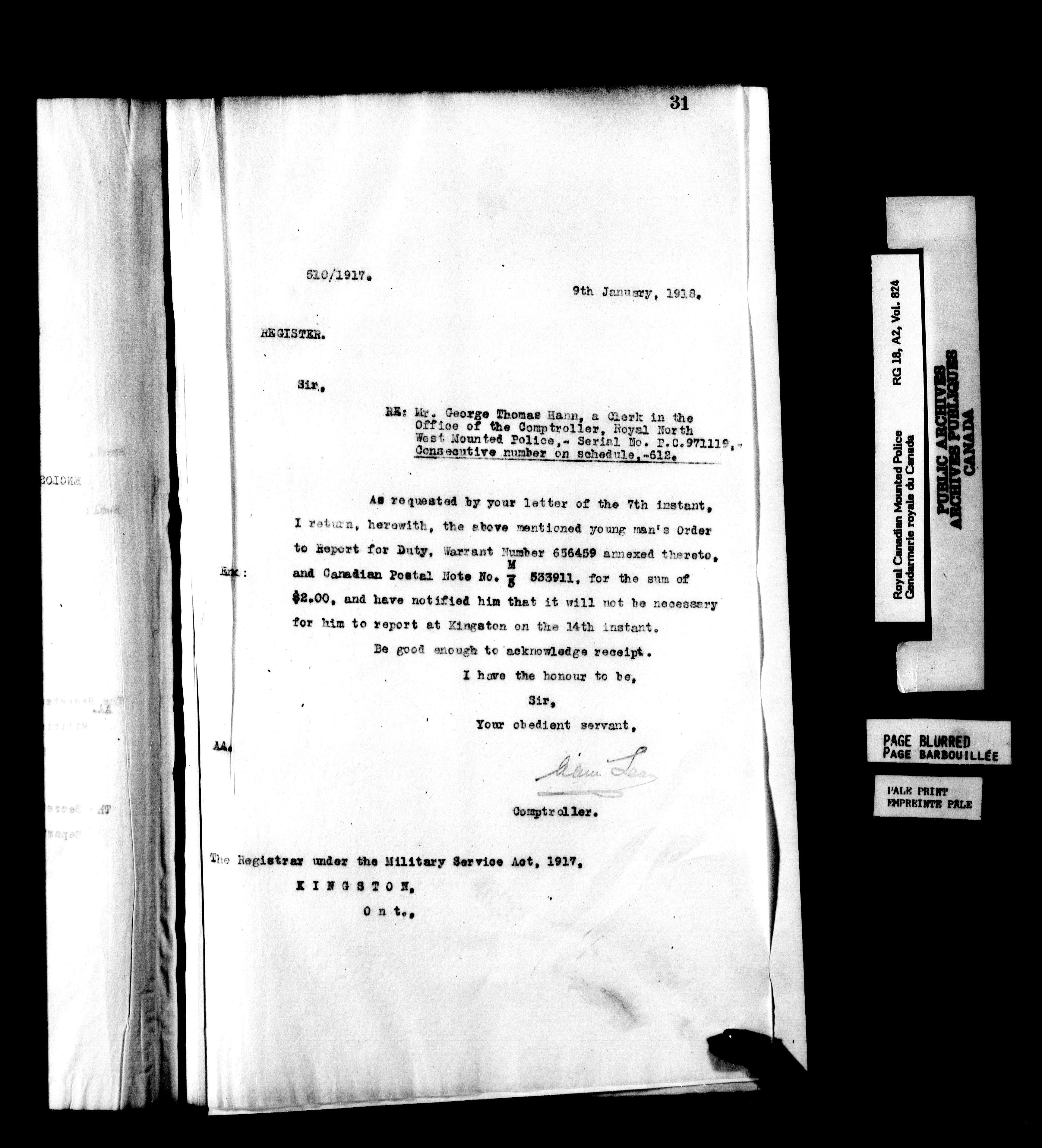 Royal Canadian Mounted Police, Office of the Comptroller : Letterbooks, 1883-1919 : T-6226