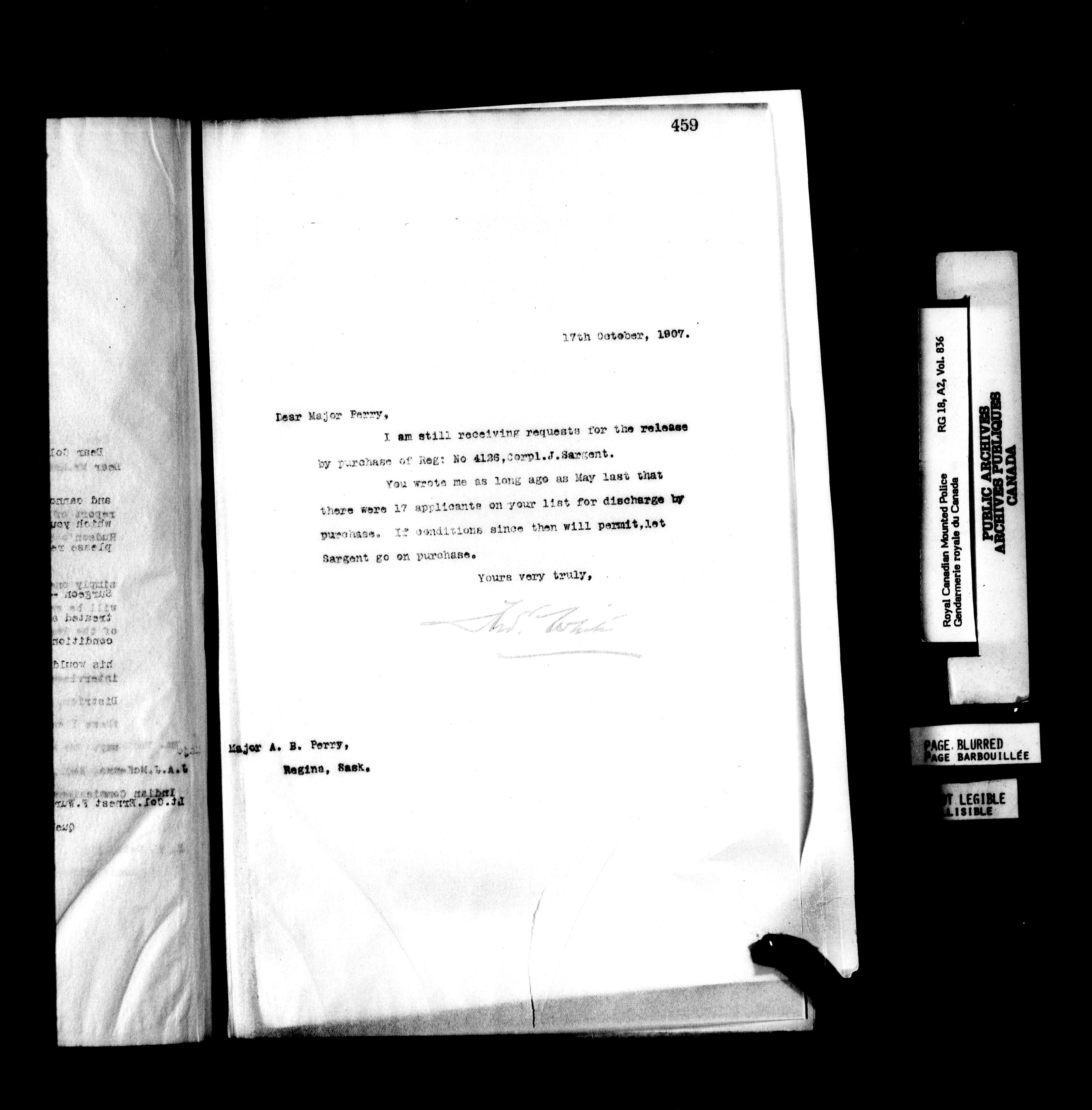 Royal Canadian Mounted Police, Office of the Comptroller : Semi-official correspondence, 1903-1919 - 6234