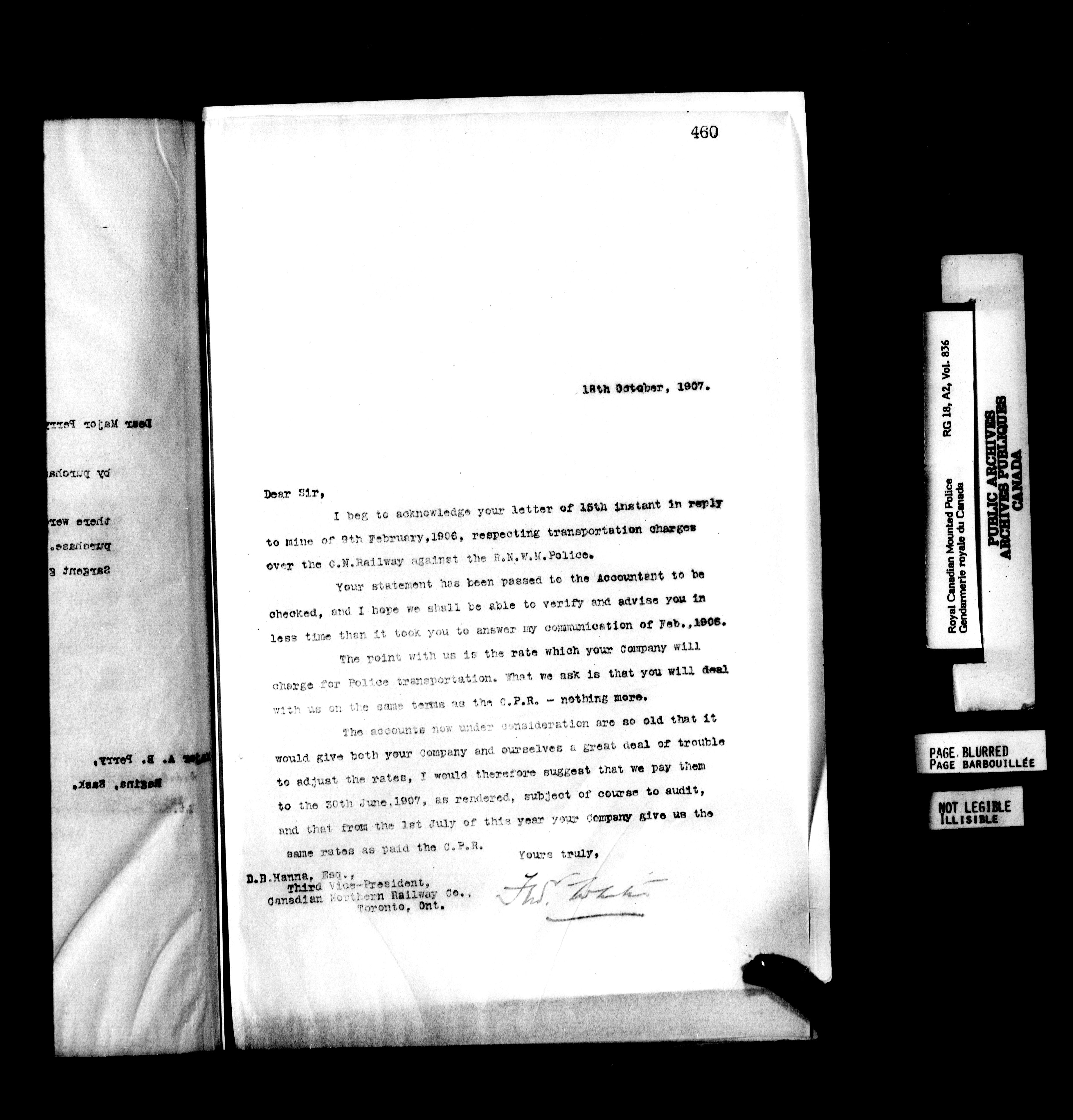 Royal Canadian Mounted Police, Office of the Comptroller : Semi-official correspondence, 1903-1919 - 6234