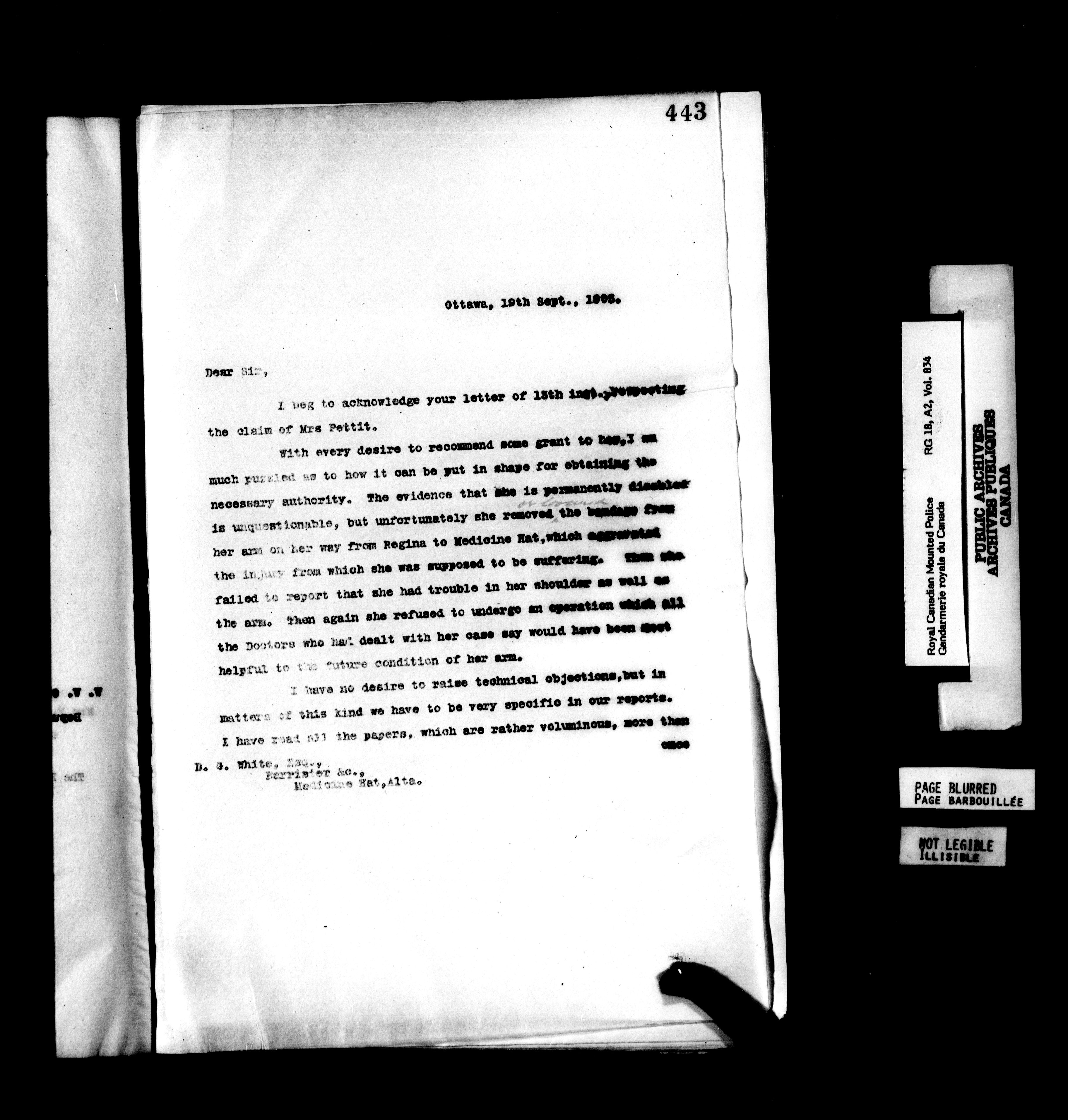 Royal Canadian Mounted Police, Office of the Comptroller : Semi-official correspondence, 1903-1919 - 6234