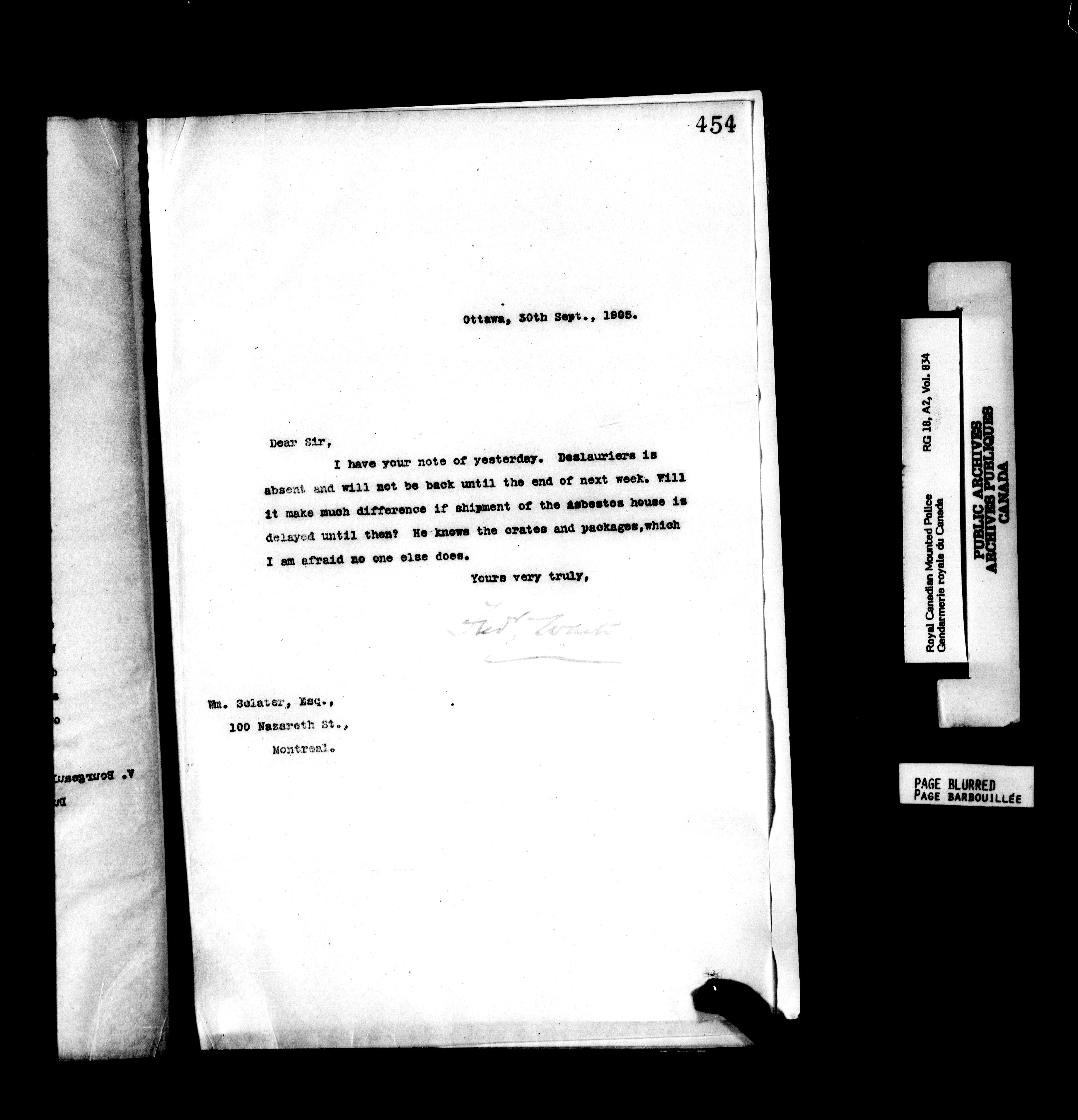 Royal Canadian Mounted Police, Office of the Comptroller : Semi-official correspondence, 1903-1919 - 6234