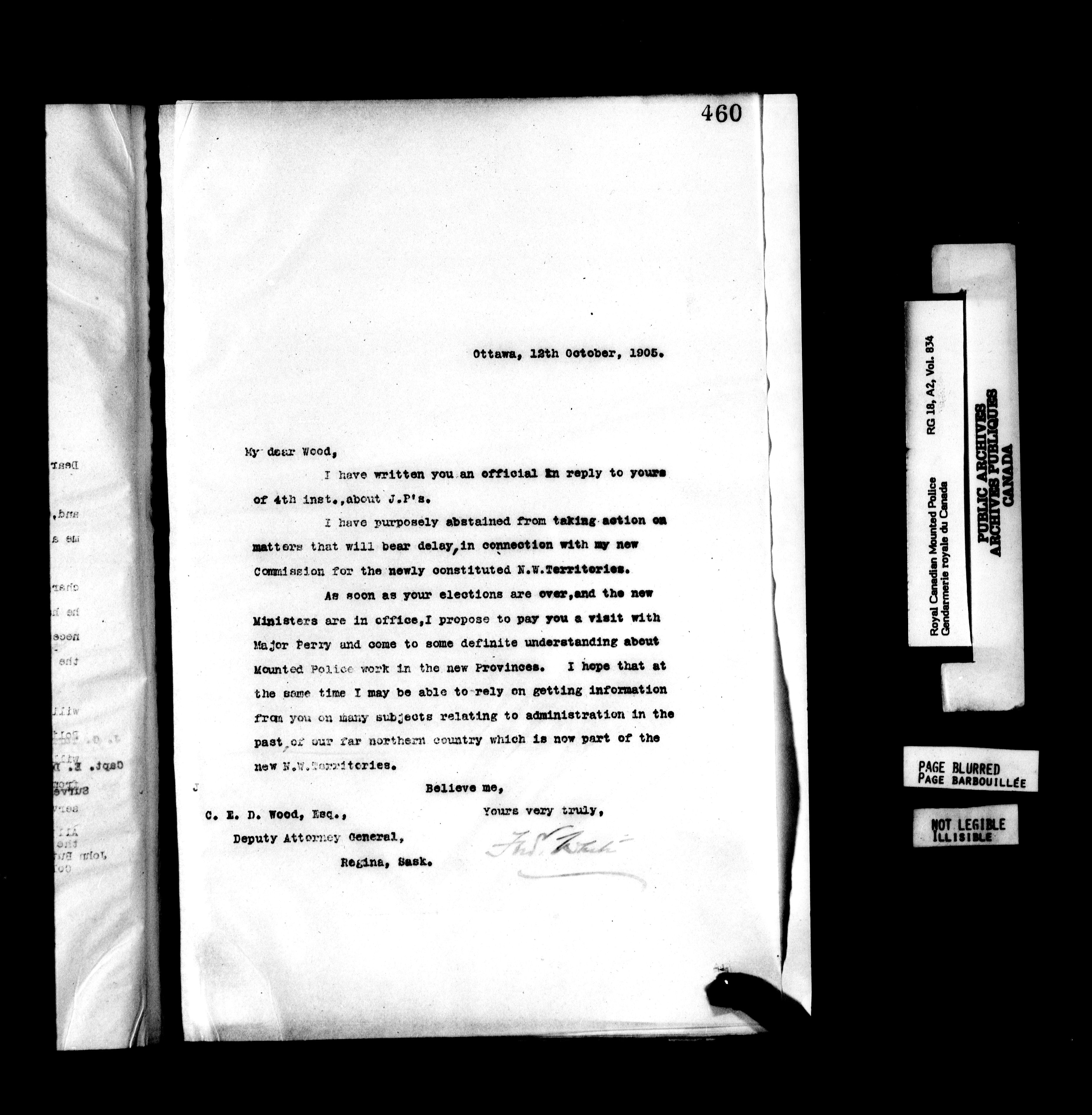 Royal Canadian Mounted Police, Office of the Comptroller : Semi-official correspondence, 1903-1919 - 6234