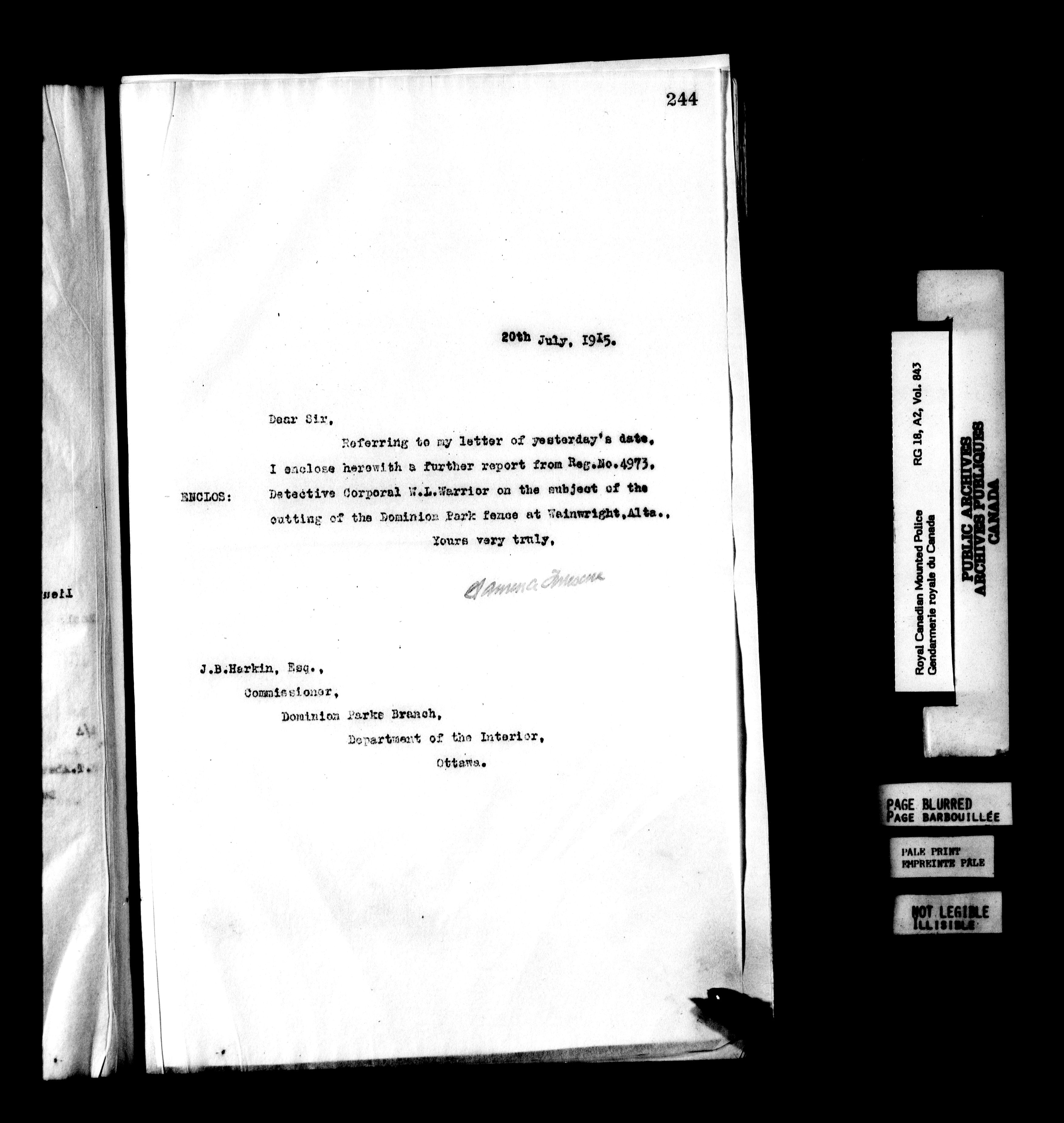 Royal Canadian Mounted Police, Office of the Comptroller : Semi-official correspondence, 1903-1919 - 6237