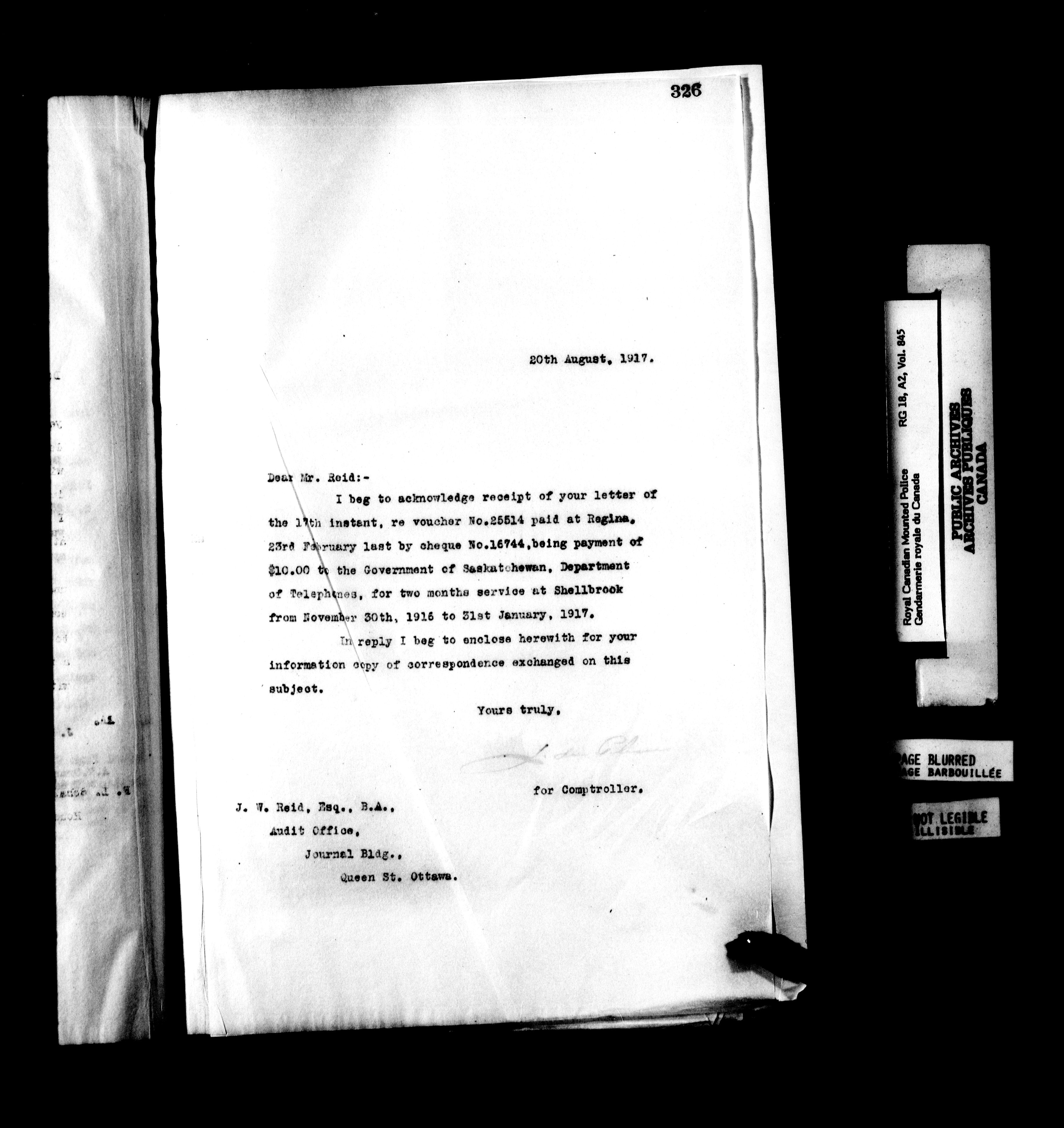 Royal Canadian Mounted Police, Office of the Comptroller : Semi-official correspondence, 1903-1919 - 6238