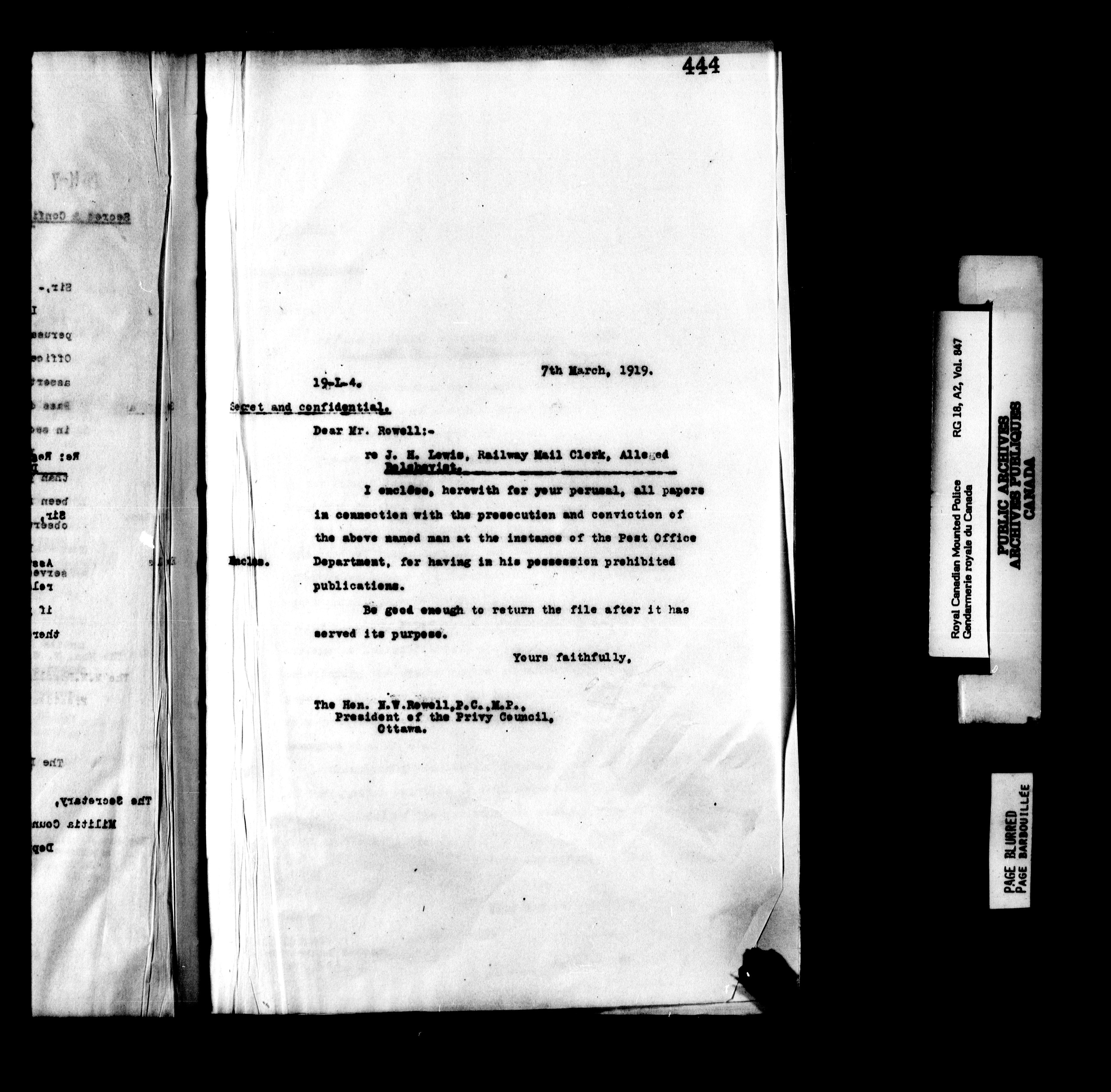 Royal Canadian Mounted Police, Office of the Comptroller : Letterbooks, 1883-1919 : T-6240
