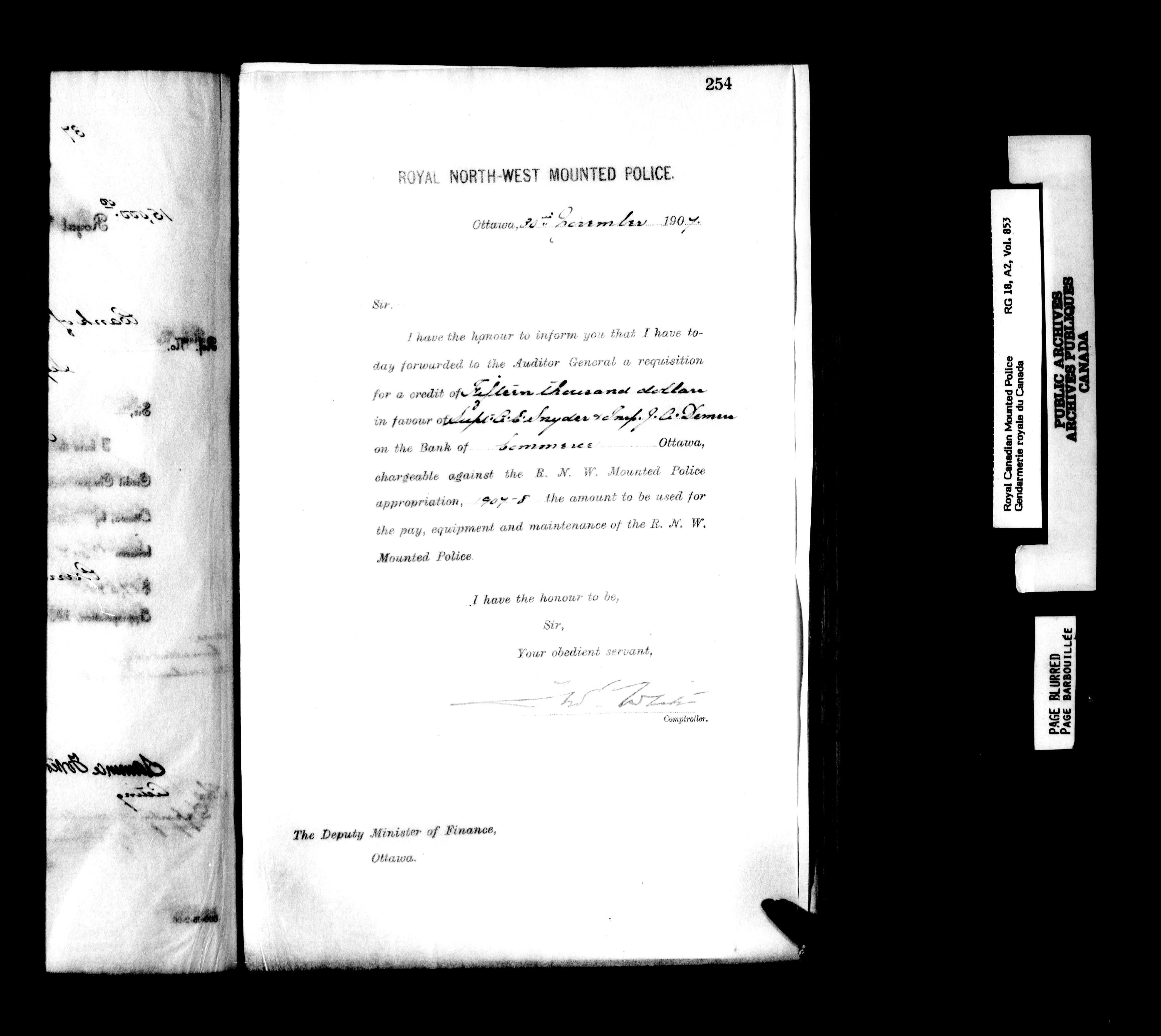 Royal Canadian Mounted Police, Office of the Comptroller : Correspondence relating to finance, 1895-1917 - 6241