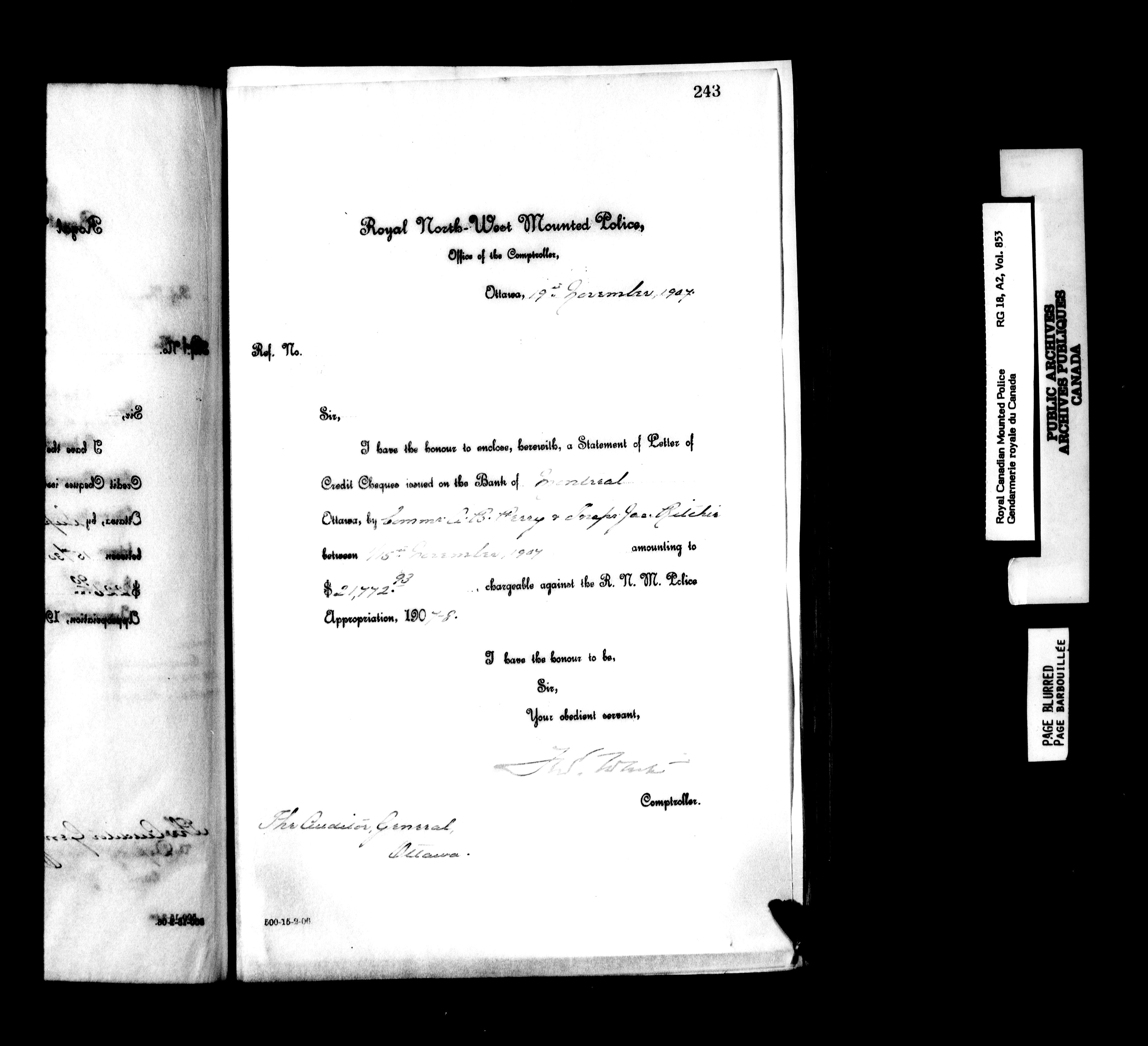 Royal Canadian Mounted Police, Office of the Comptroller : Correspondence relating to finance, 1895-1917 - 6241