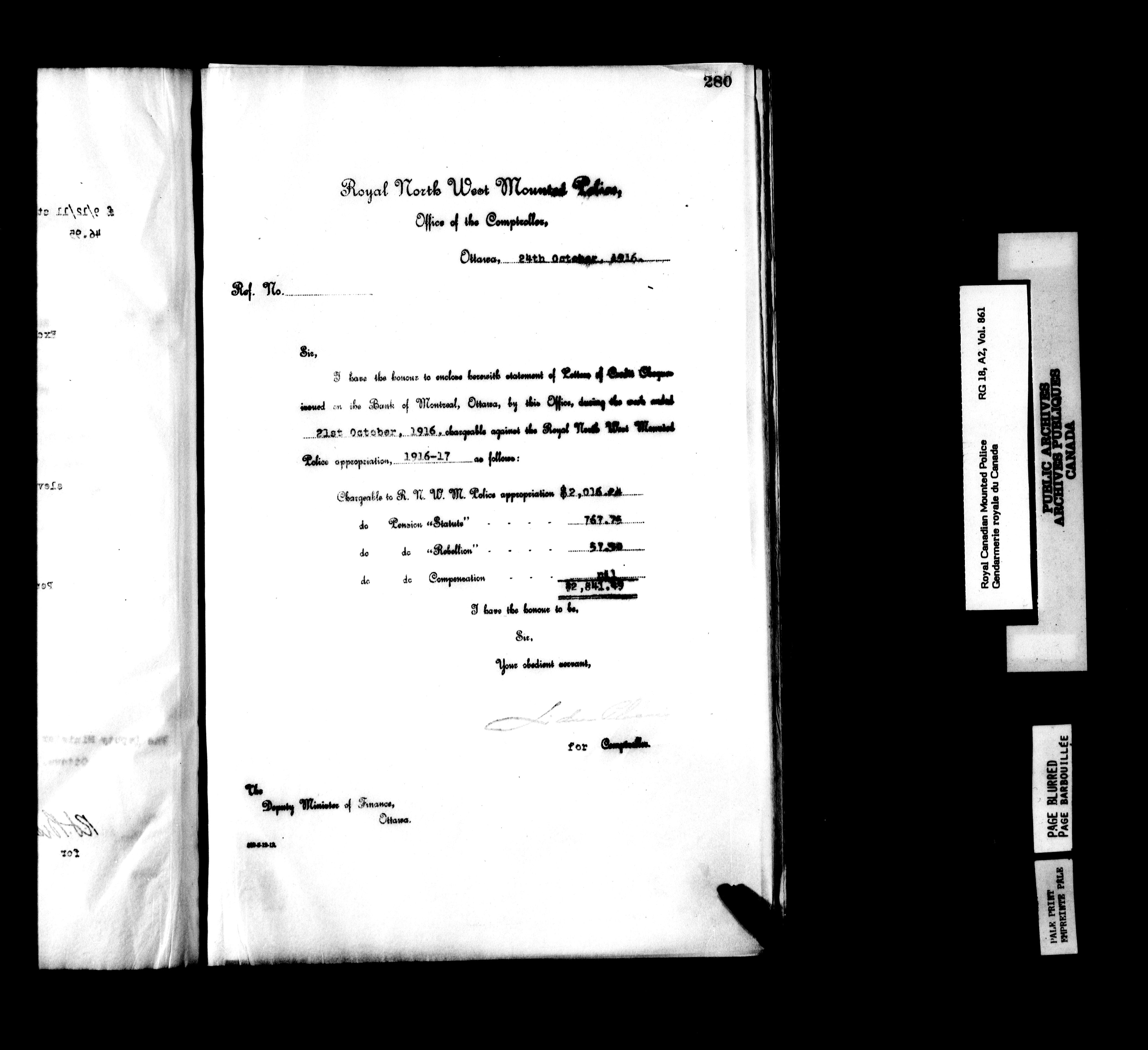 Royal Canadian Mounted Police, Office of the Comptroller : Correspondence relating to finance, 1895-1917 - 6246