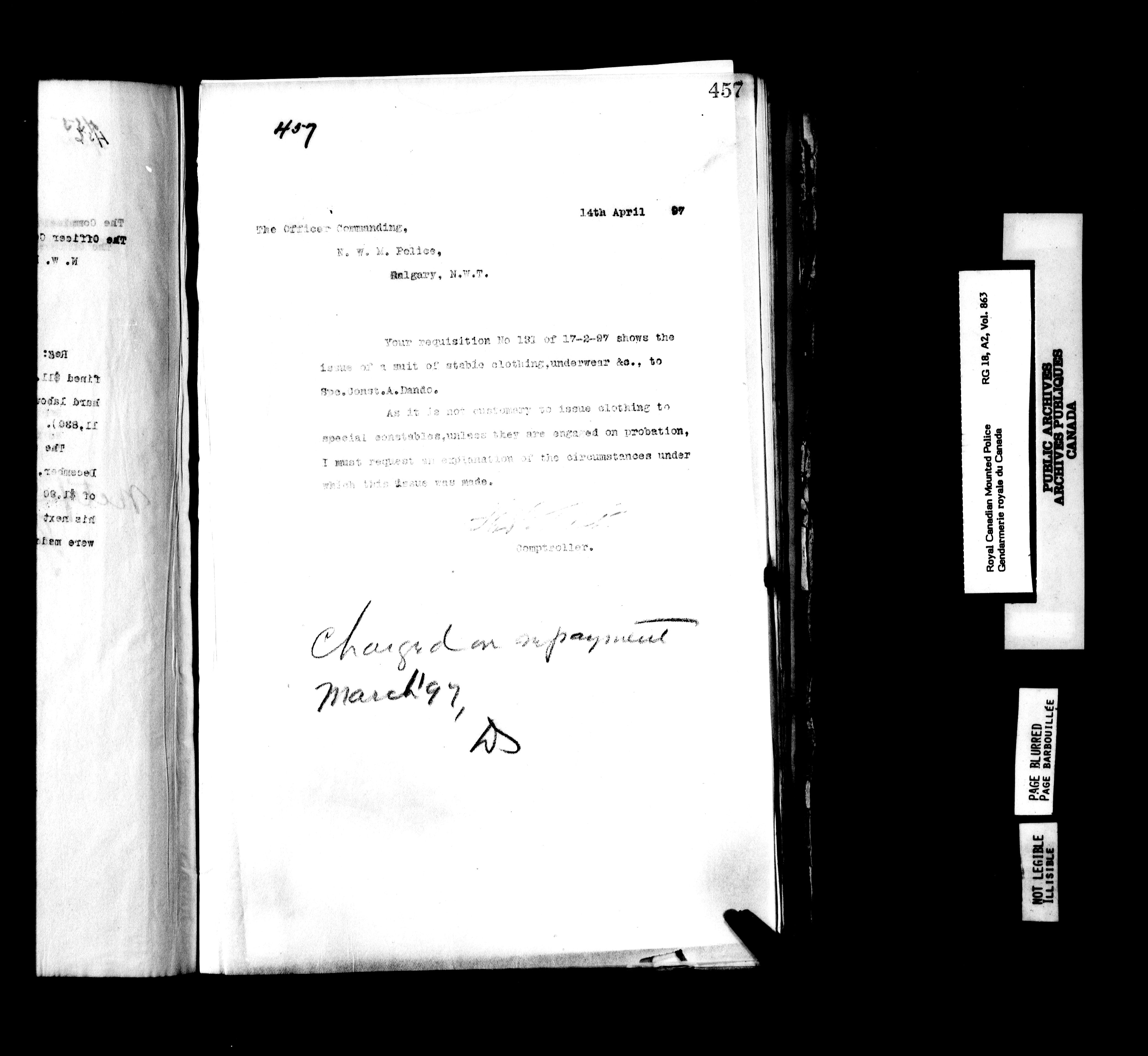 Royal Canadian Mounted Police, Office of the Comptroller : Correspondence relating to finance, 1895-1917 - 6246