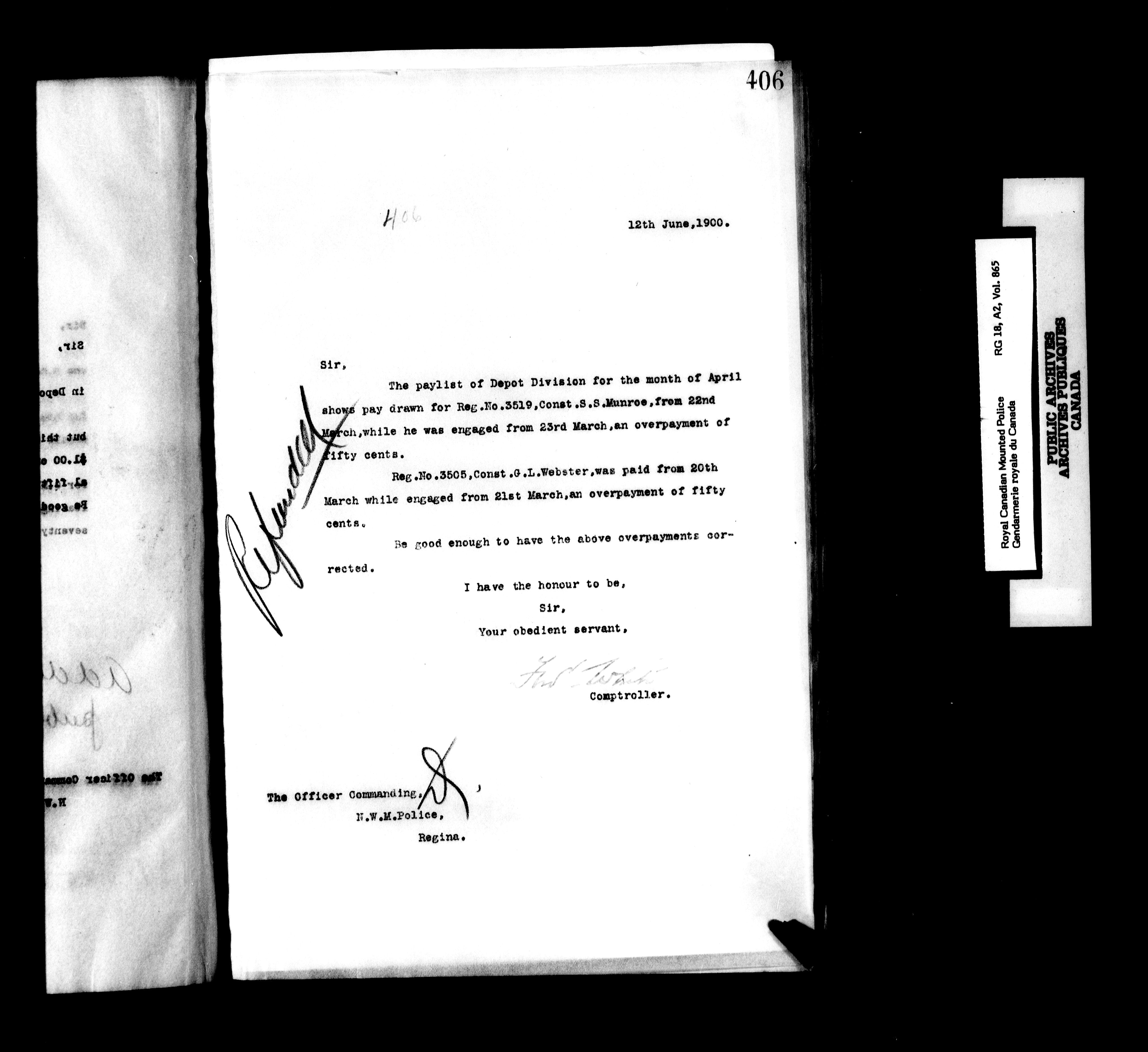 Royal Canadian Mounted Police, Office of the Comptroller : Letterbooks, 1883-1919 : T-6247