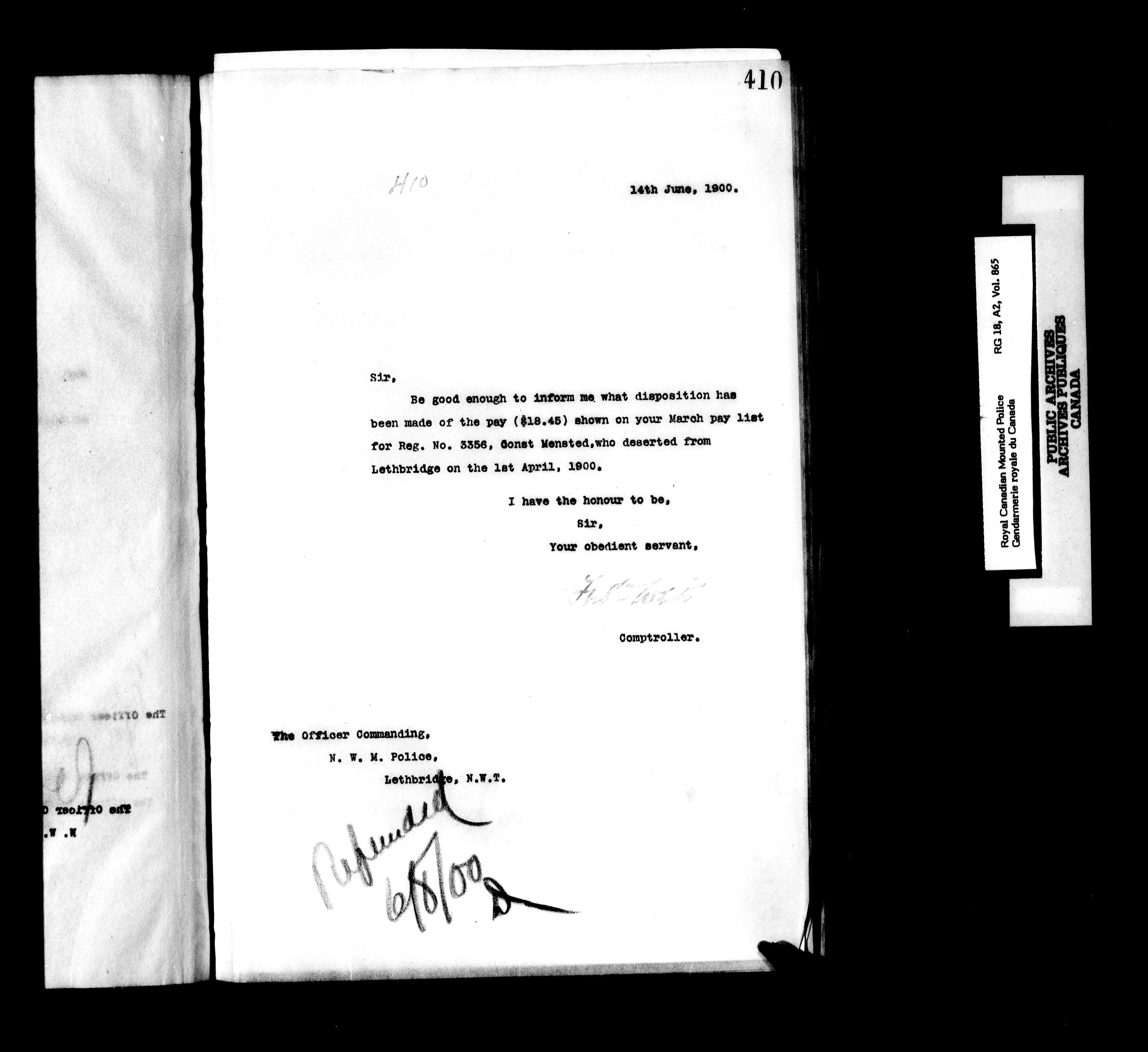 Royal Canadian Mounted Police, Office of the Comptroller : Letterbooks, 1883-1919 : T-6247