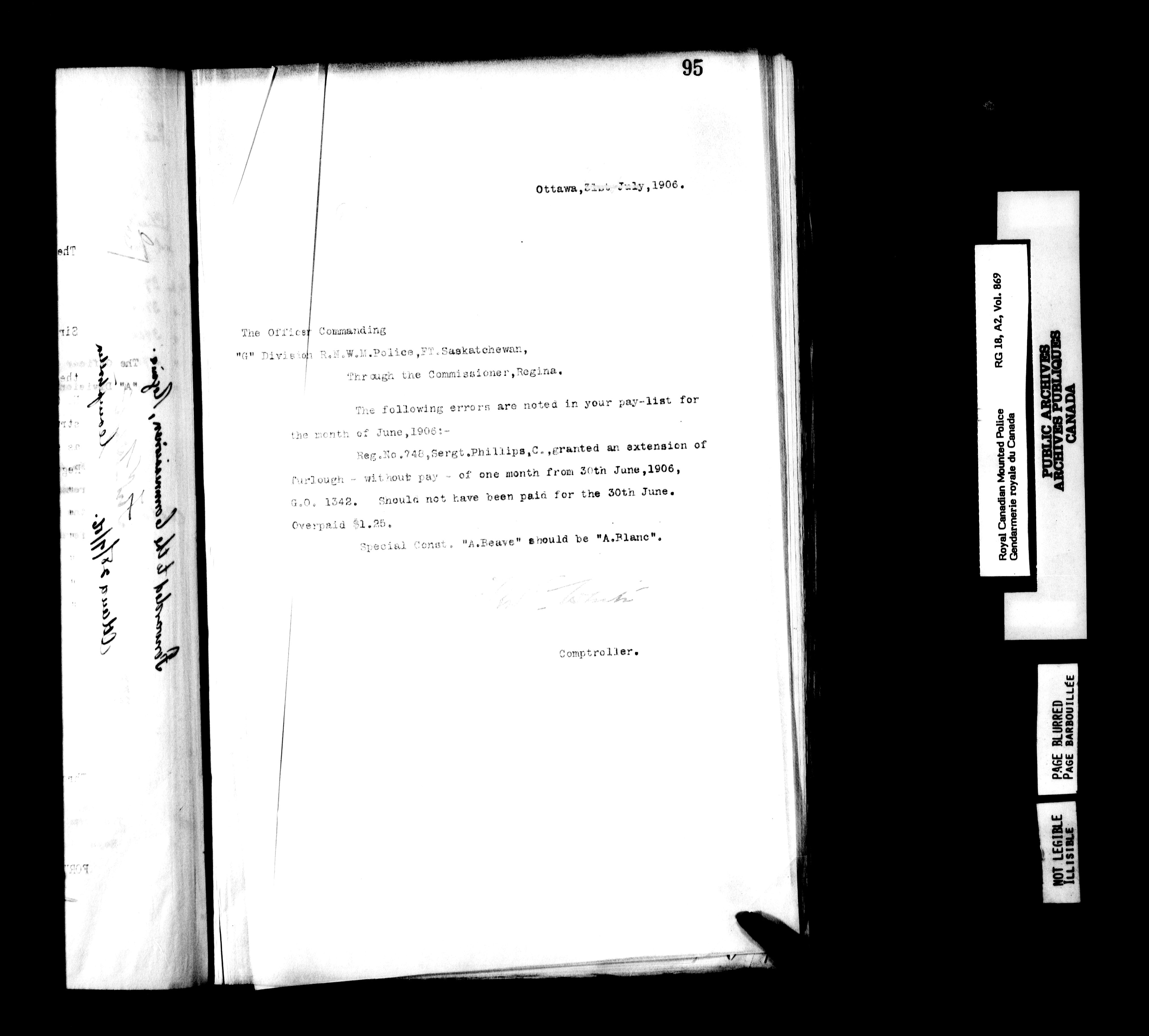 Royal Canadian Mounted Police, Office of the Comptroller : Correspondence relating to personnel, pay, and kit, 1894-1914 - 6249