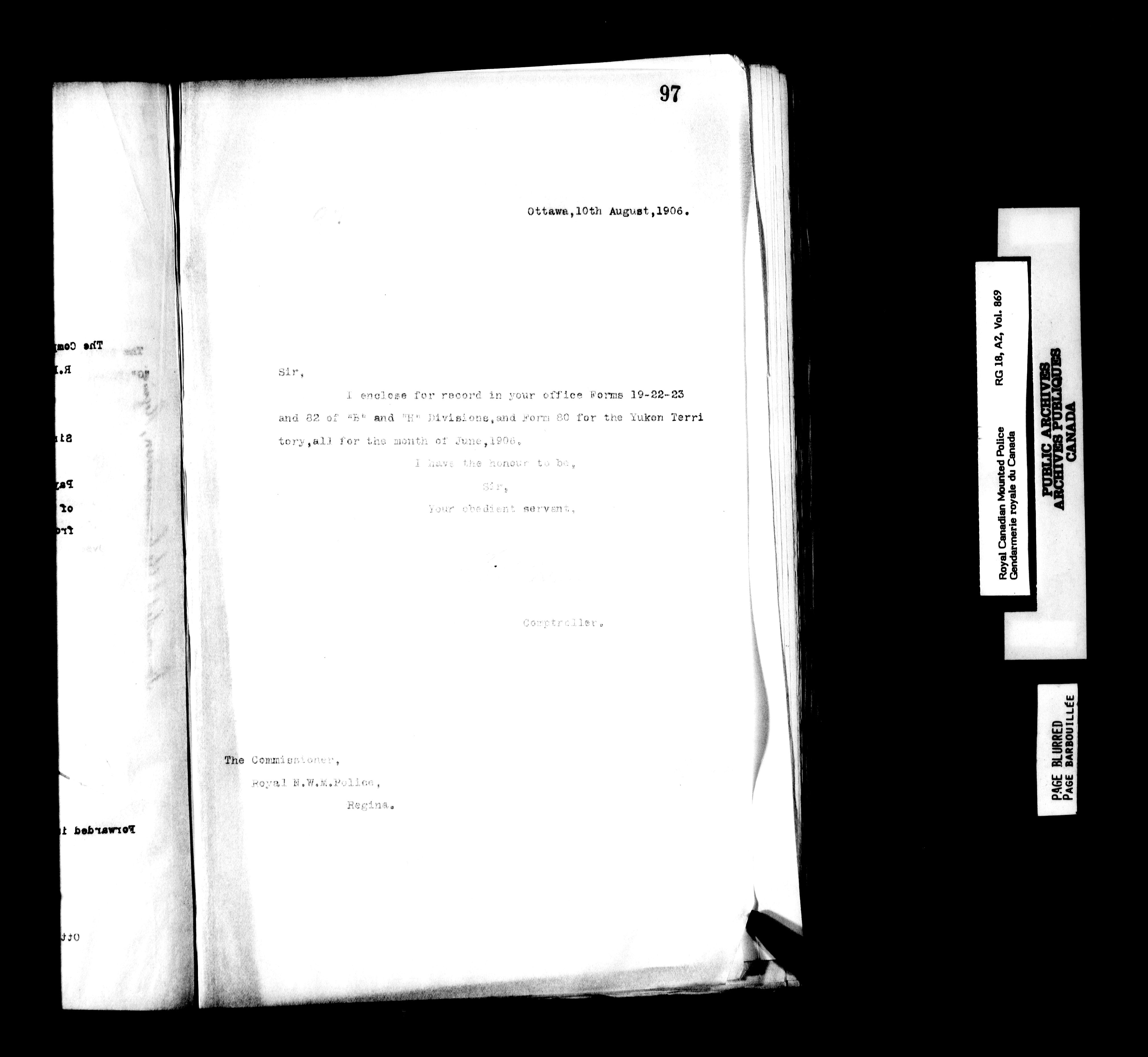 Royal Canadian Mounted Police, Office of the Comptroller : Correspondence relating to personnel, pay, and kit, 1894-1914 - 6249
