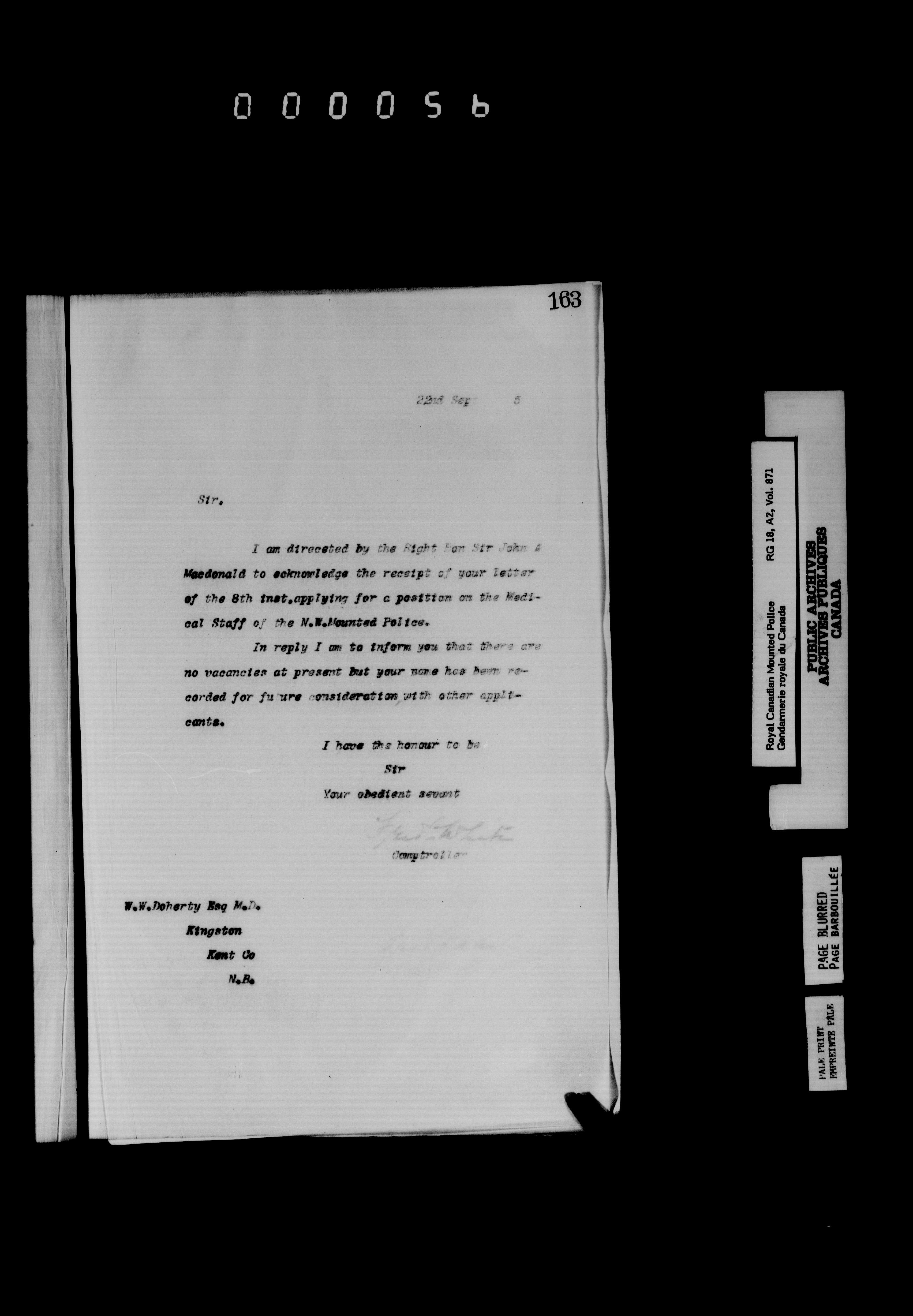 Royal Canadian Mounted Police, Office of the Comptroller : Correspondence relating to personnel and recruiting, 1895-1919 - 6251