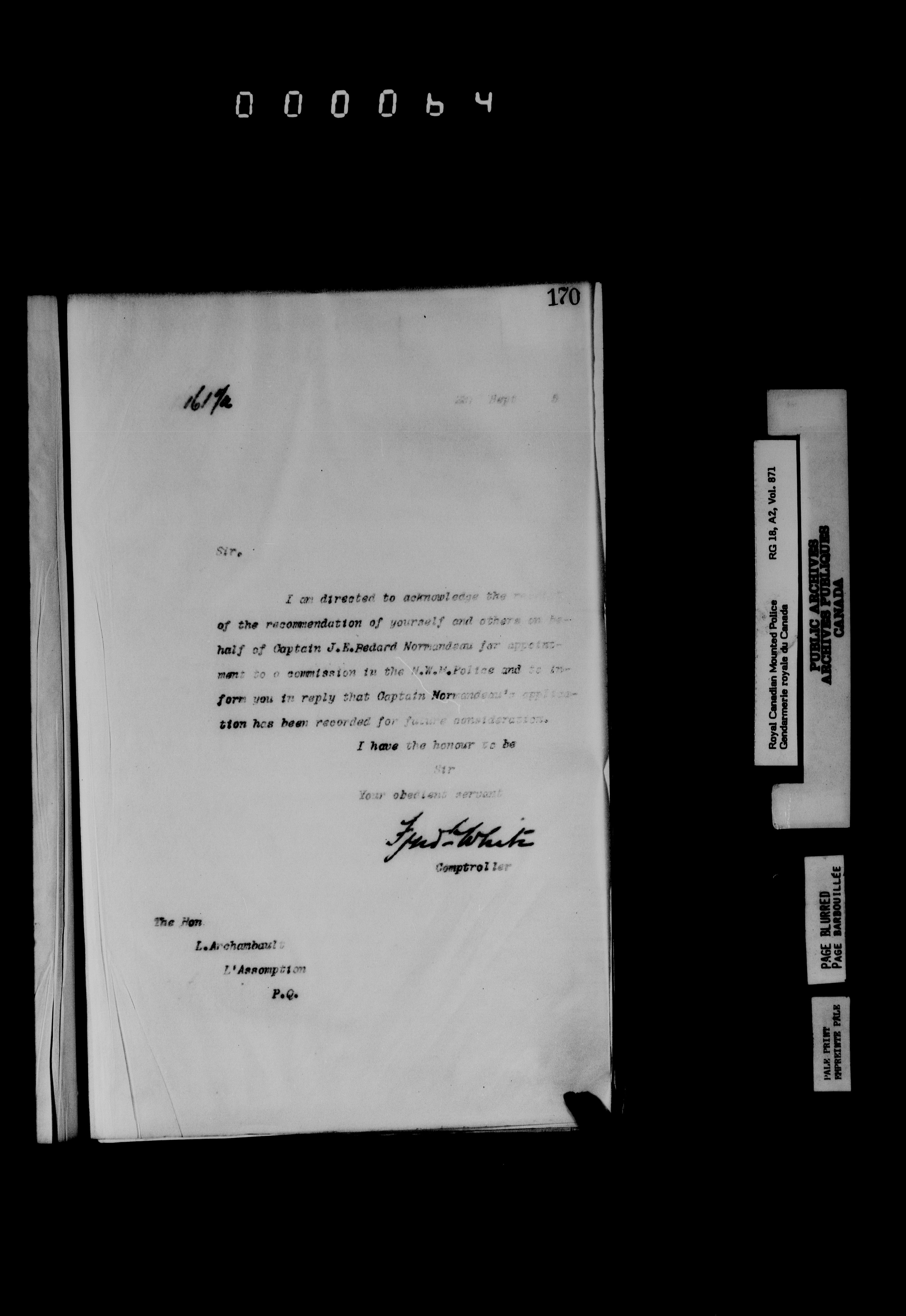 Royal Canadian Mounted Police, Office of the Comptroller : Correspondence relating to personnel and recruiting, 1895-1919 - 6251