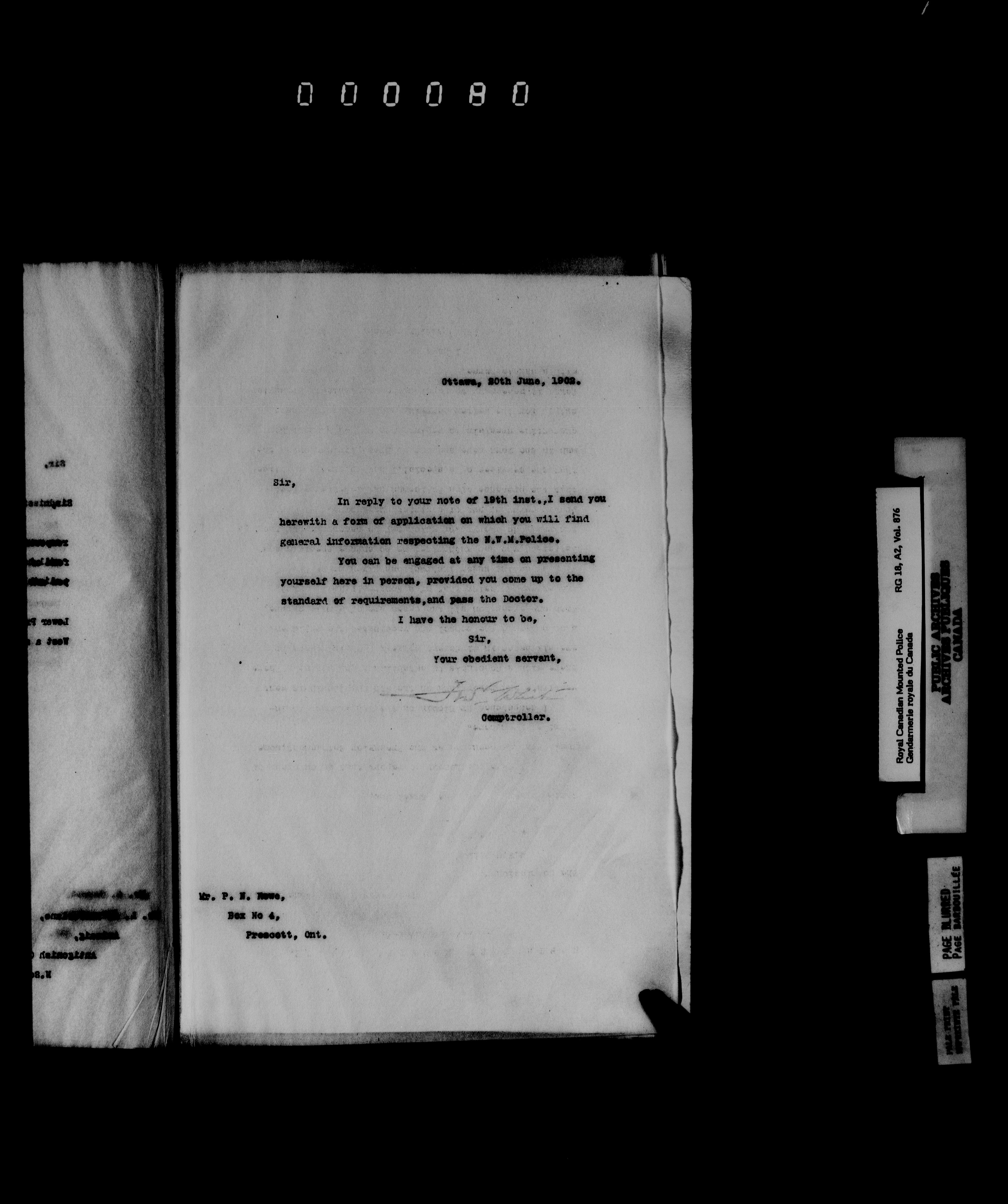 Royal Canadian Mounted Police, Office of the Comptroller : Correspondence relating to personnel and recruiting, 1895-1919 - 6255