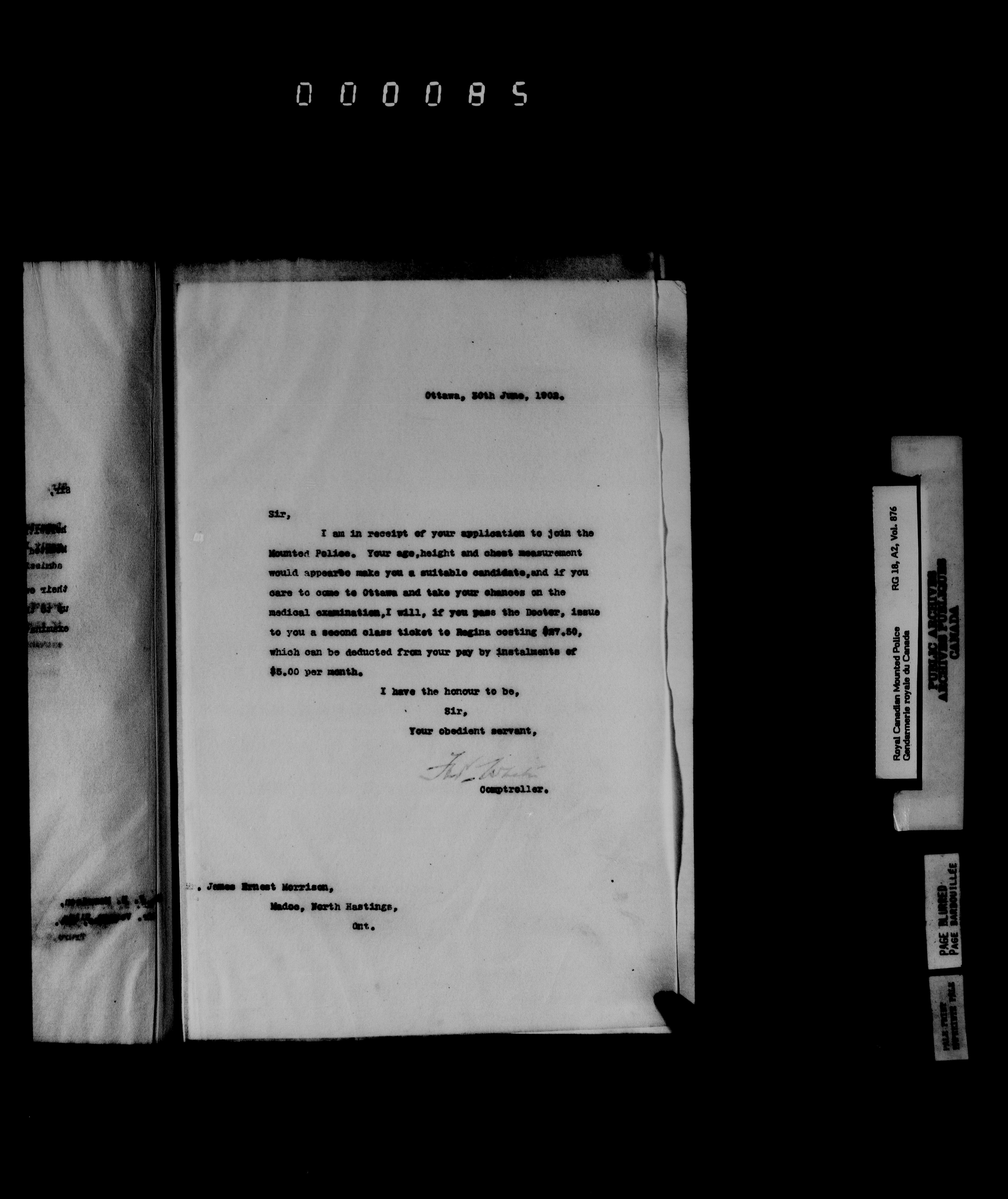 Royal Canadian Mounted Police, Office of the Comptroller : Correspondence relating to personnel and recruiting, 1895-1919 - 6255