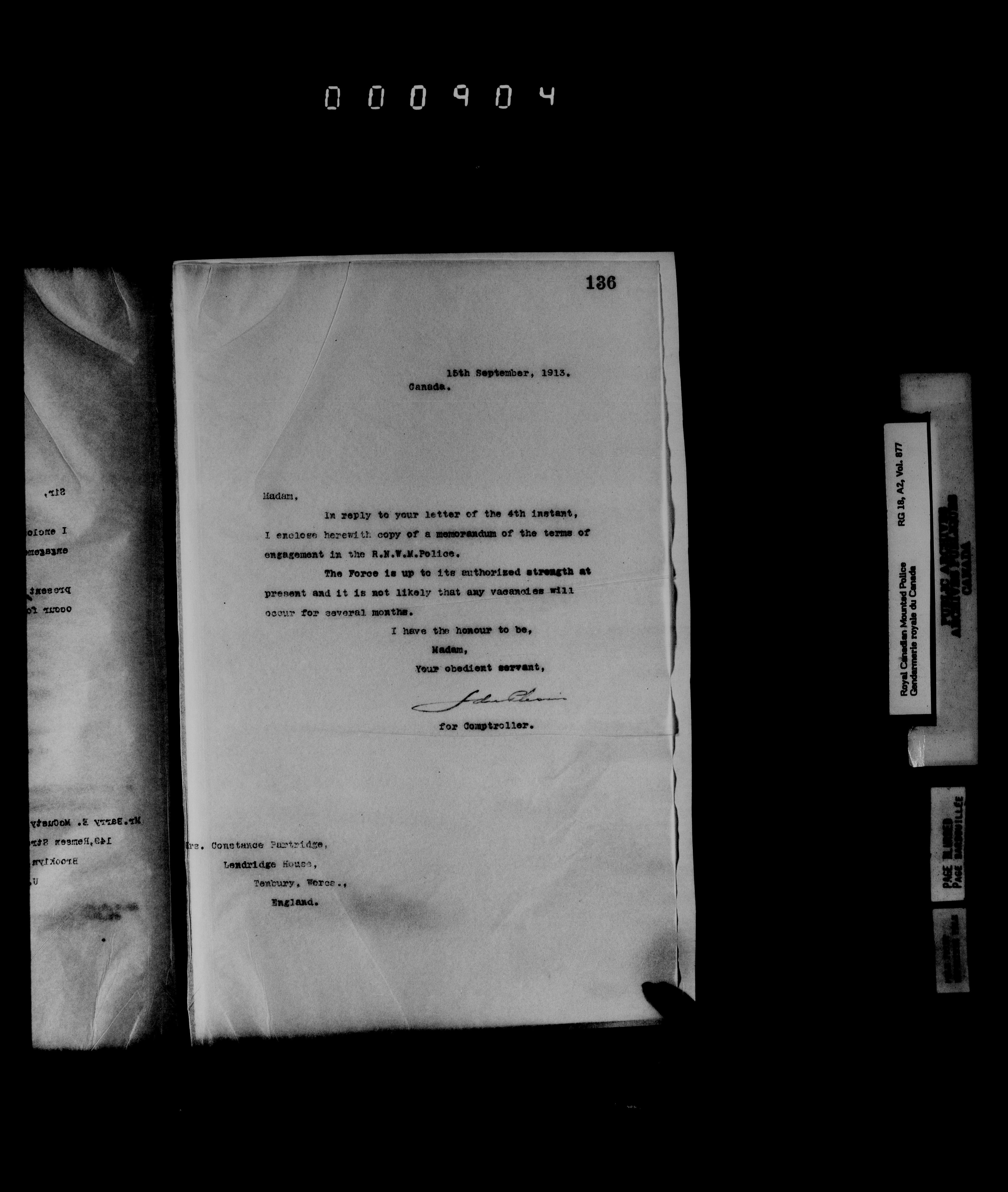 Royal Canadian Mounted Police, Office of the Comptroller : Correspondence relating to personnel and recruiting, 1895-1919 - 6255
