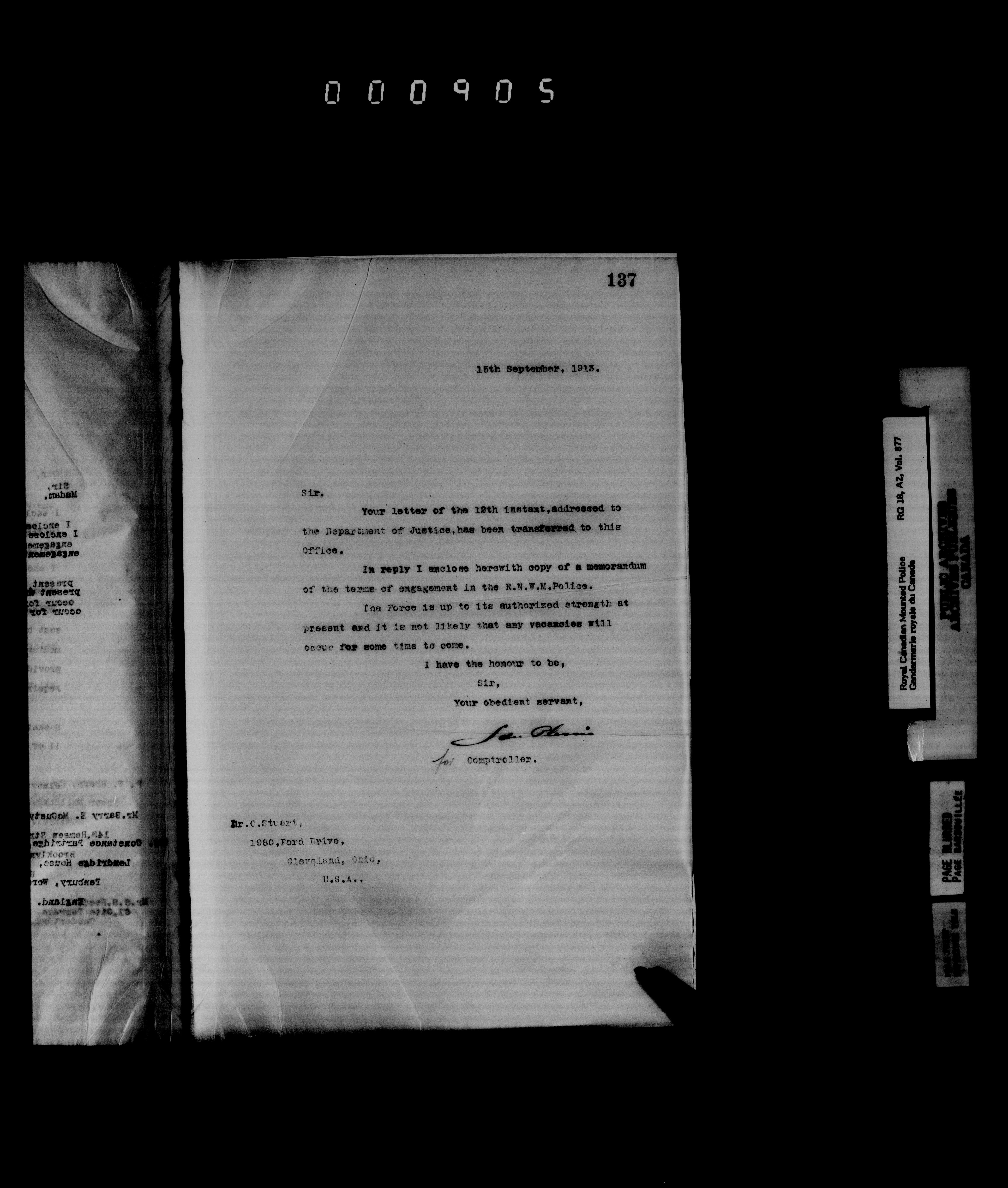 Royal Canadian Mounted Police, Office of the Comptroller : Correspondence relating to personnel and recruiting, 1895-1919 - 6255