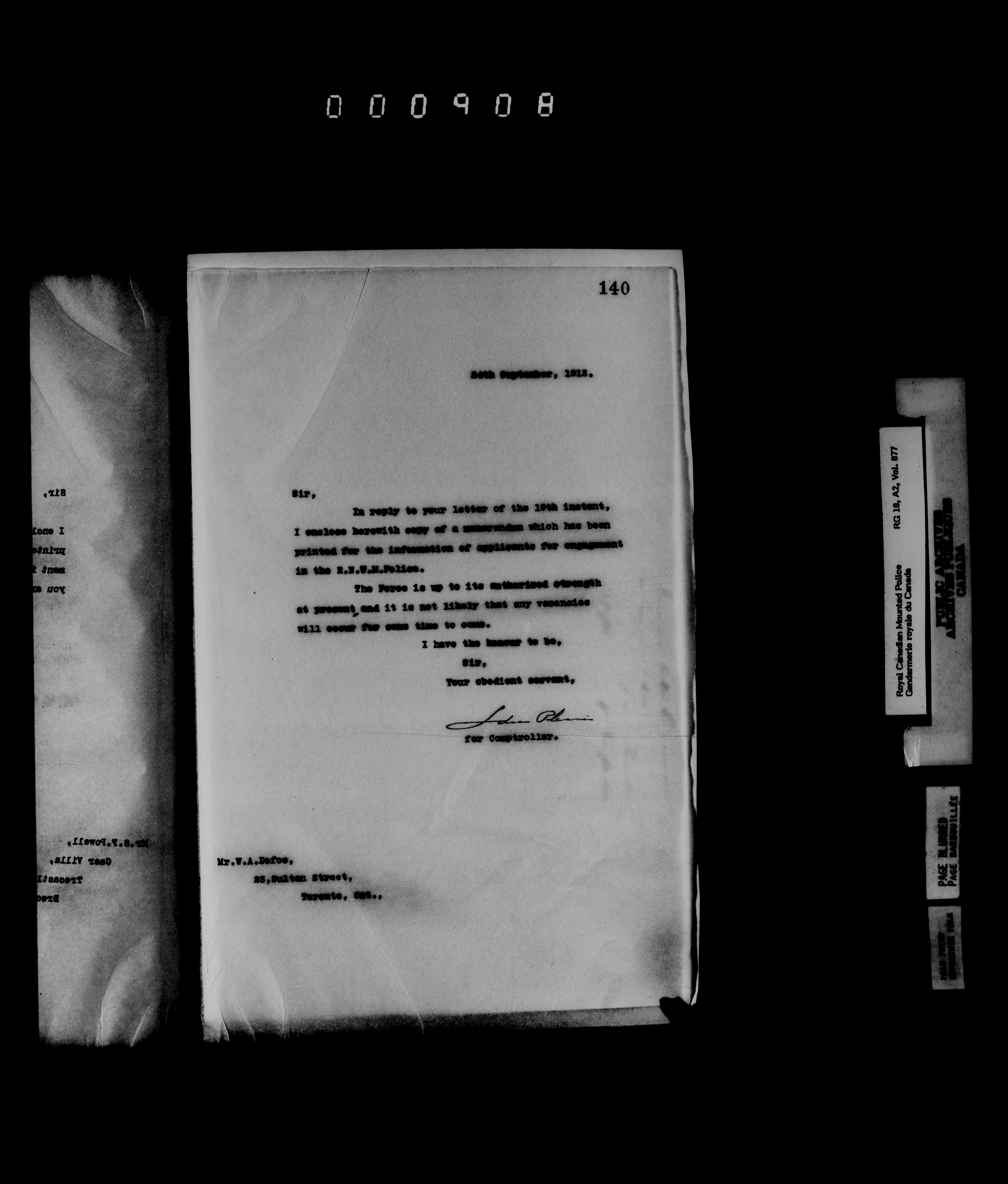 Royal Canadian Mounted Police, Office of the Comptroller : Correspondence relating to personnel and recruiting, 1895-1919 - 6255