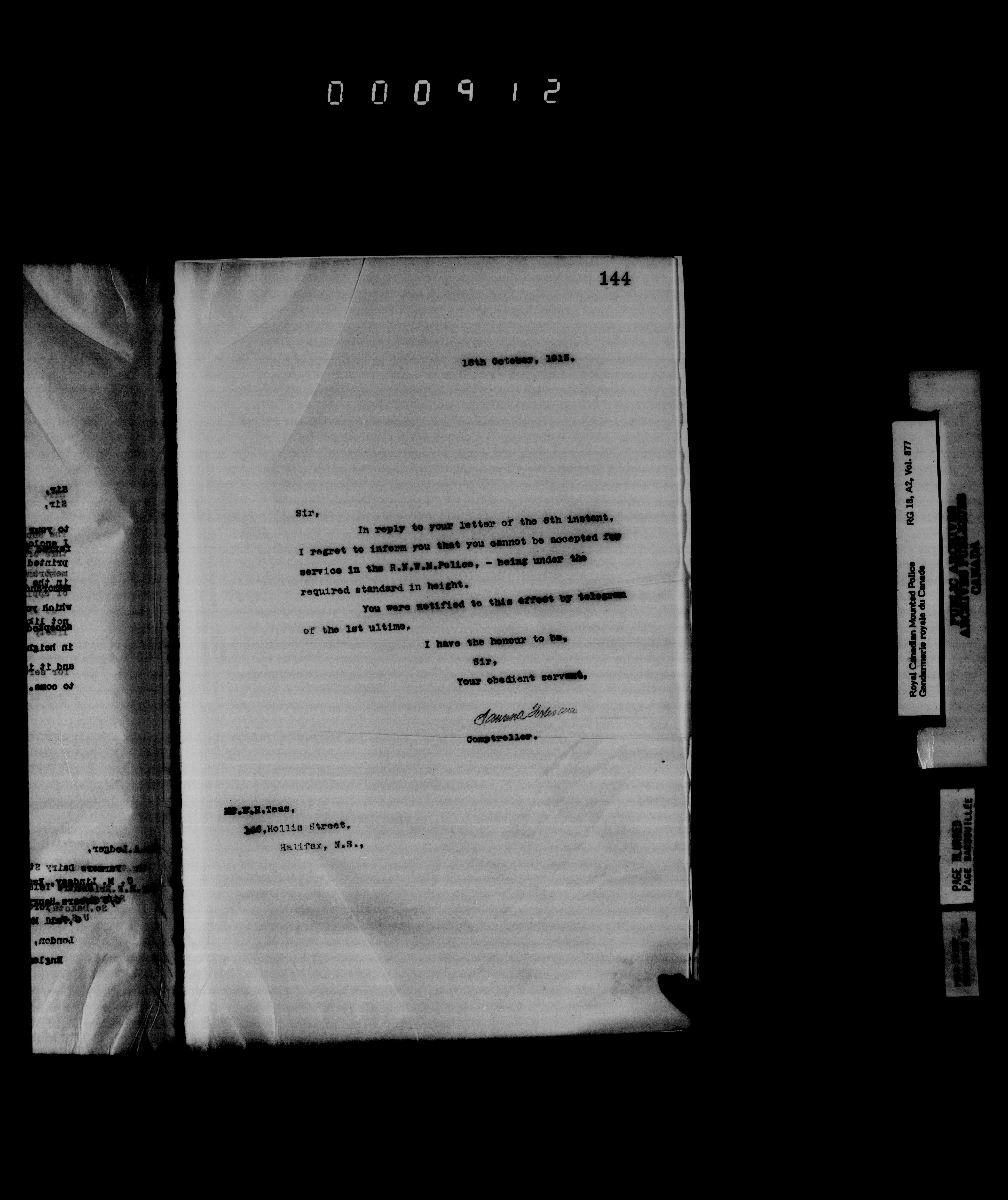 Royal Canadian Mounted Police, Office of the Comptroller : Correspondence relating to personnel and recruiting, 1895-1919 - 6255