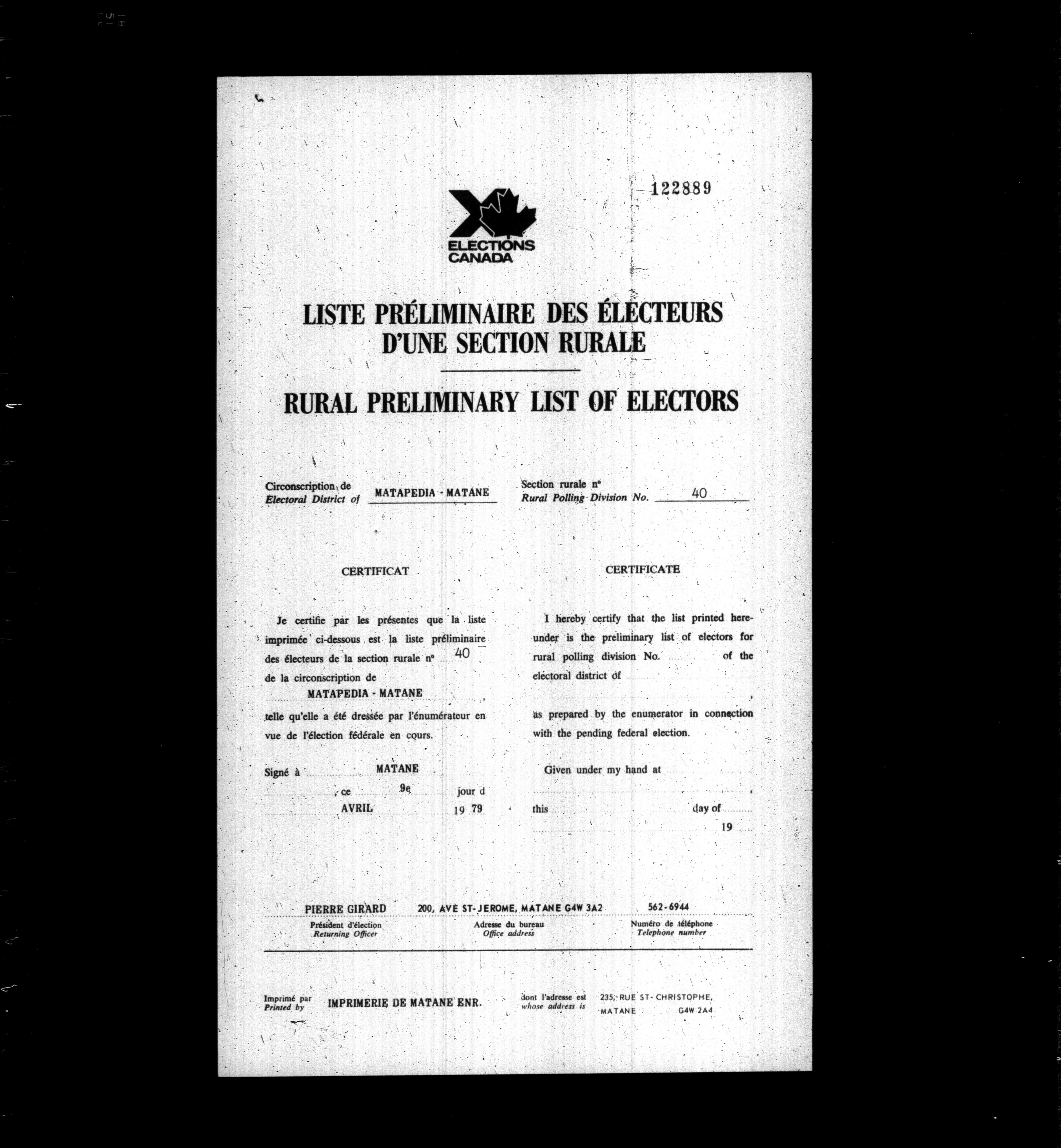 Voters' lists Québec, 1979 - 626